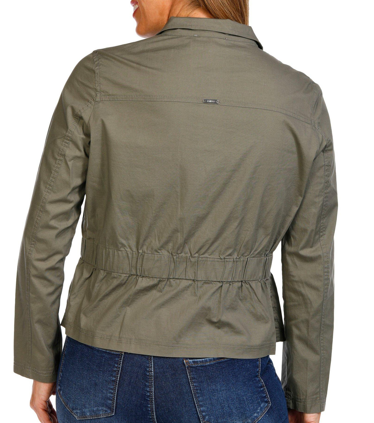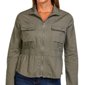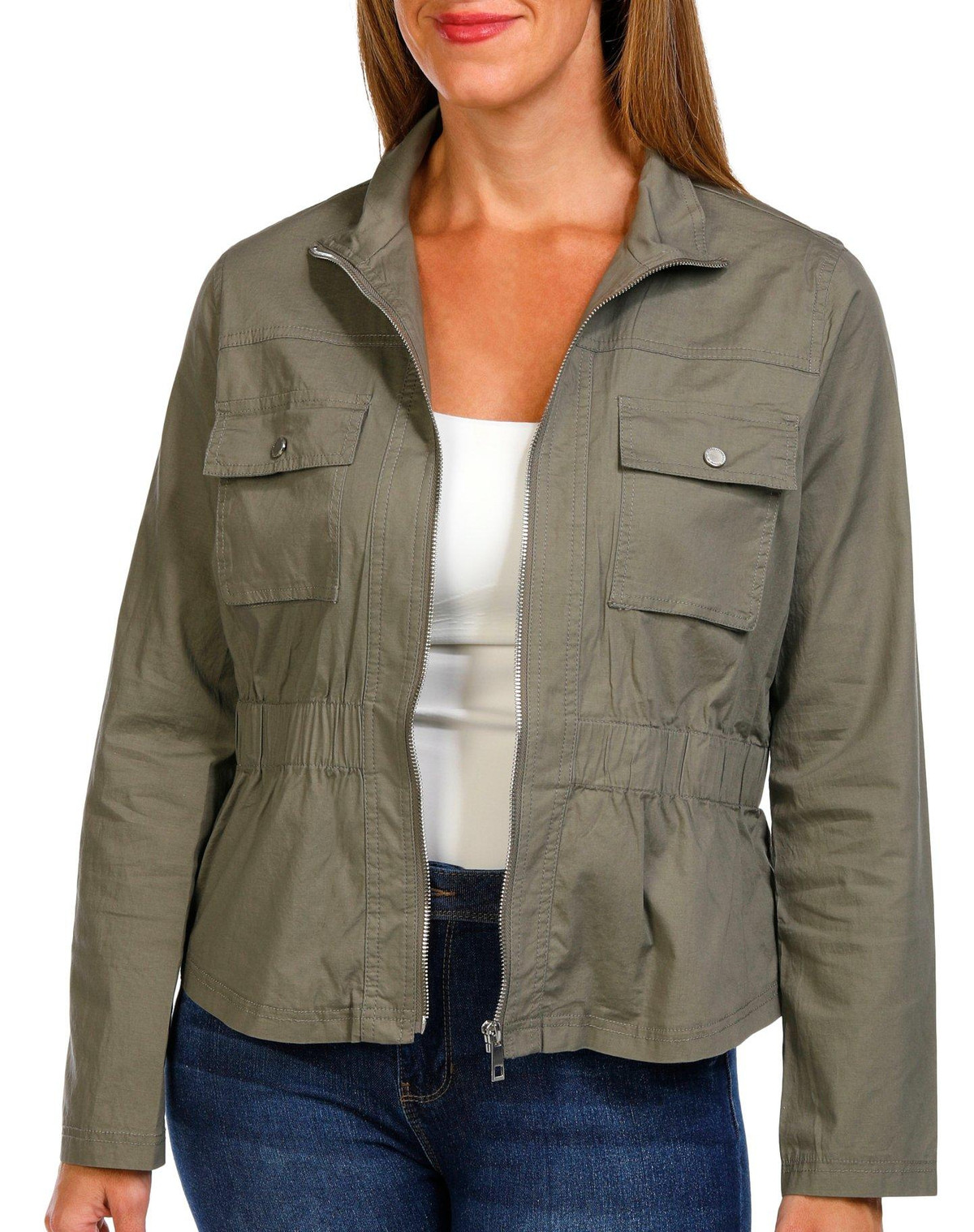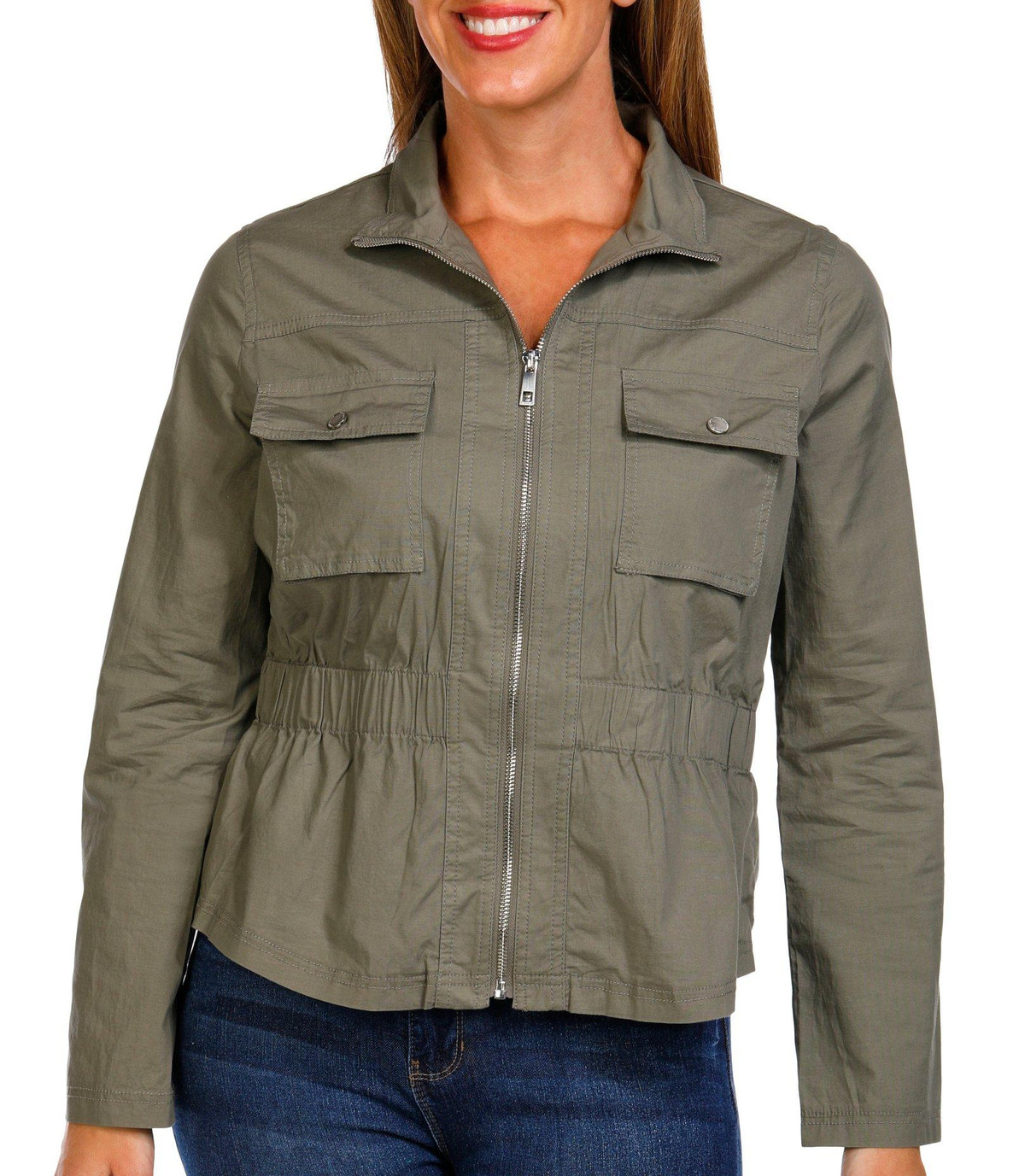 Layer up in style with this Women’s Zip Front Cinched Waist Jacket. Featuring a solid color, long sleeves, full front zip closure, chest pockets, and a cinched waist for a flattering fit, its crafted from lightweight material for easy, everyday wear. Fabrication 97% cotton, 3% spandex