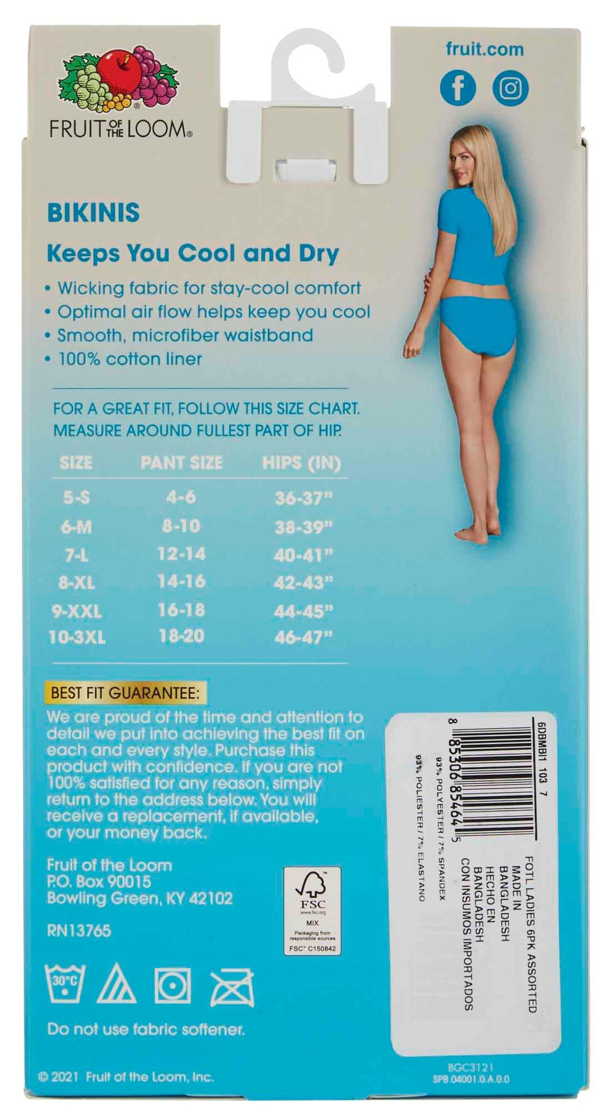 This Fruit of the Loom 6 pk. of Micro-Mesh underwear features assorted solid-color designs on breathable micro-mesh fabric, moisture-wicking technology, a cooling waistband, and 100% cotton liner. Fabrication 93% polyester, 7% spandex.