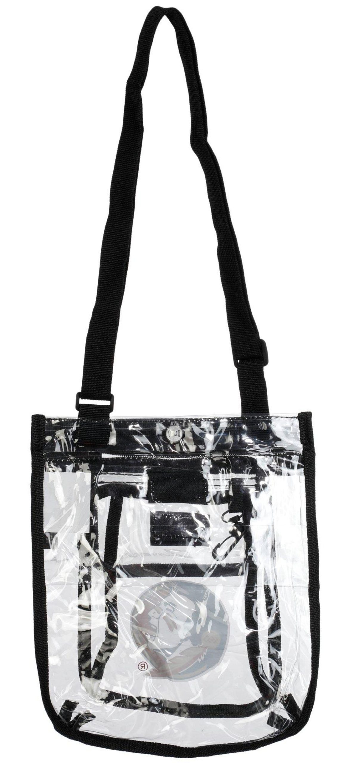 Stay organized on game day with the FSU Florida State Seminoles Gameday Clear Crossbody Bag. Designed to meet most stadium regulations, it features a spacious snap closure main compartment, two hook and loop fastener pockets, and a secure zipper pocket for essentials. Ideal for stadium entry, tailgates, or campus events. Wipe clean with a damp cloth.