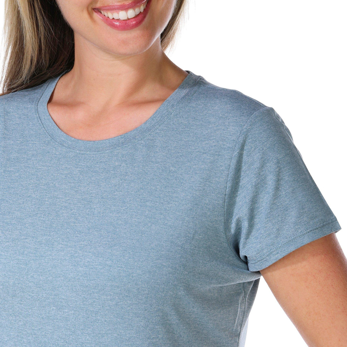 This women’s active Everyday Performance tee features a classic crew neckline, short sleeves, and a soft heathered finish. Engineered with OMI DRY technology, it delivers moisture control and breathable comfort for all day wear. Fabrication 87% polyester, 13% spandex