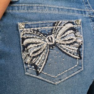 Elevate your casual style with the Juniors Bling Bows Denim Shorts! Made from a comfortable fabric blend, these shorts feature a secure button zip fly closure and a classic 5-pocket cut. The bling bows on the pockets add a trendy edge, while the distressed cuffs provide a laid-back, casual vibe. Perfect for any casual outing, these shorts are a must-have addition to your wardrobe! Fabrication is 68% Cotton, 30% Polyester, 2% Spandex. Length measures approximately 11 in.