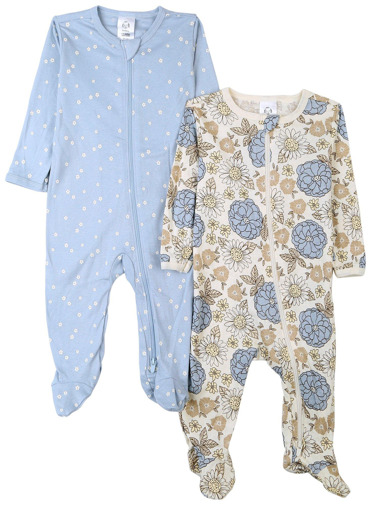 Keep your little one cozy with the Baby Girls Two-Pack Footed Sleepers from Gerber. These sleepers feature a stylish floral design and a full front zip closure for easy changes. The footed design ensures your baby stays warm from head to toe. Made from 100% cotton, these sleepers are soft and gentle on your babys skin, perfect for a comfortable nights sleep or lounging during the day.
