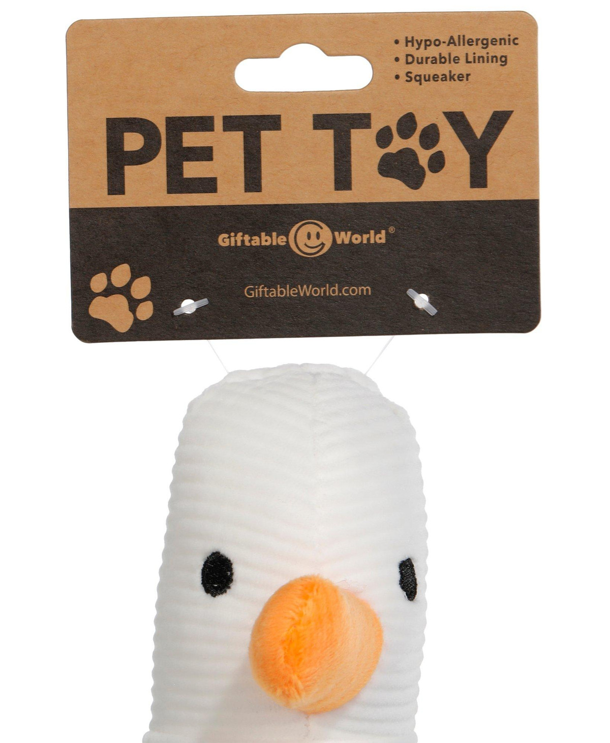Turn up the playtime charm with this seagull dog toy! This soft, plush pet toy is built for excitement, with a squeaker and crinkle inside. It’s soft yet durable, perfect for cuddles or energetic games of fetch. Fabrication is 100% Polyester. Measures approximately 9 in x 6 in x 3 in.