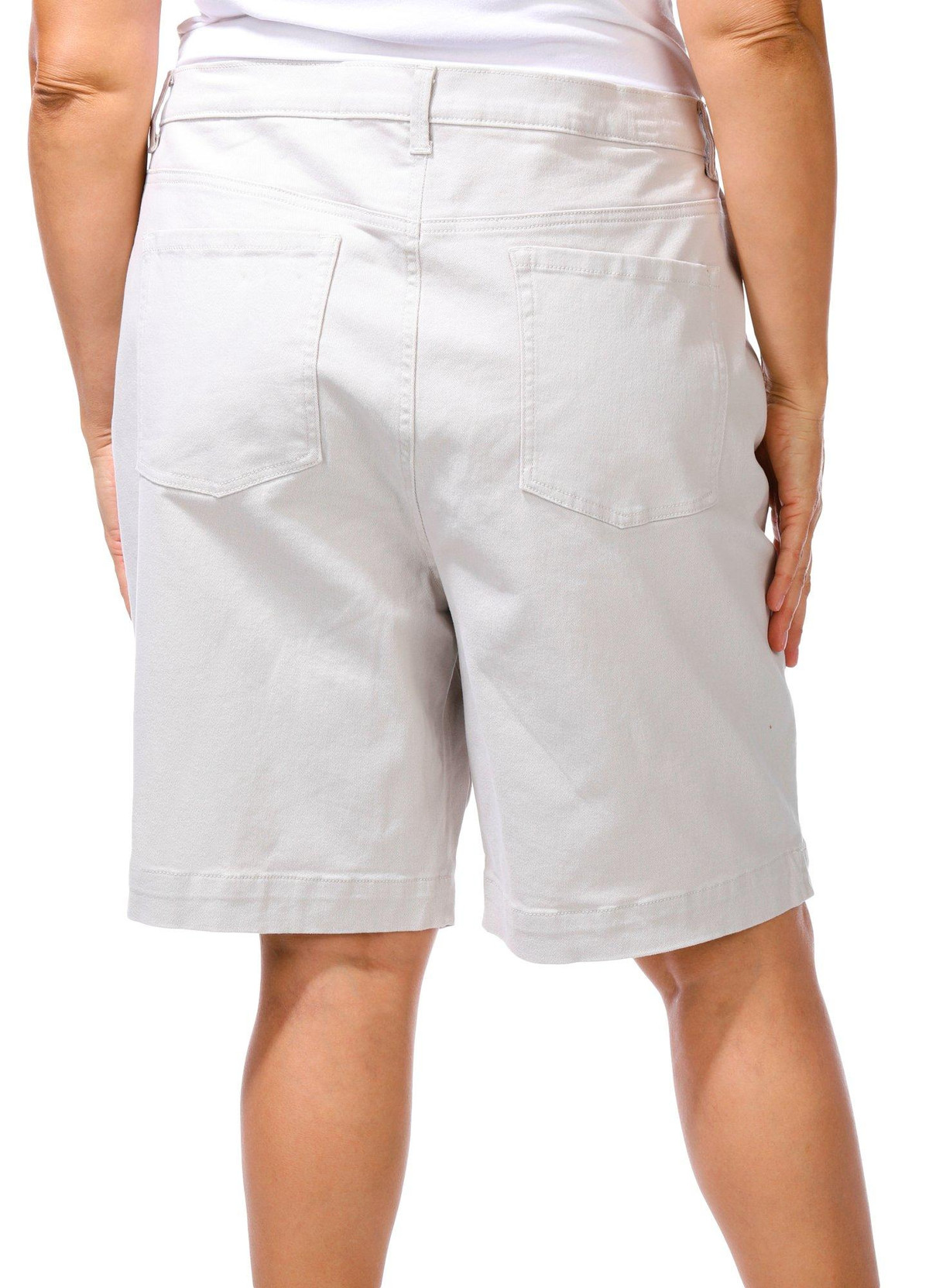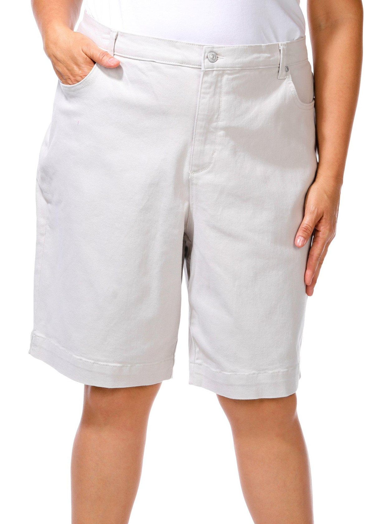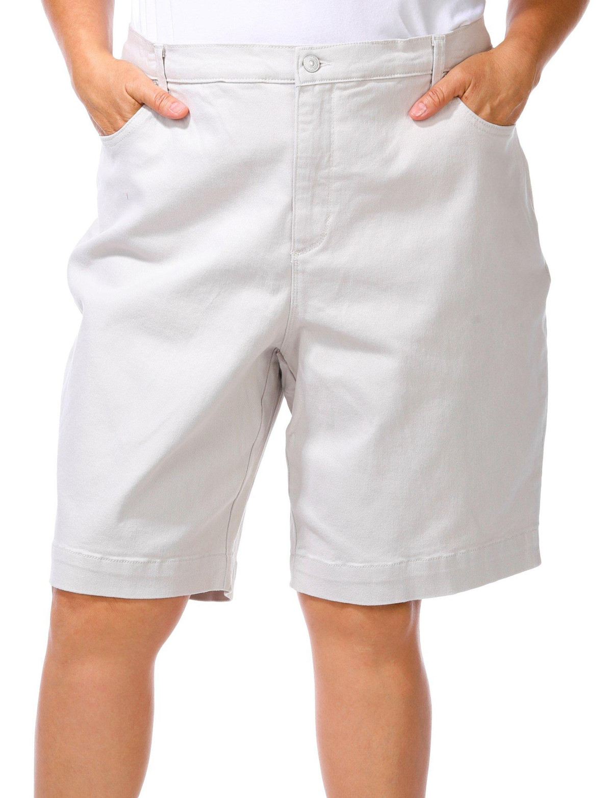 Gloria Vanderbilt provides comfort, style, and a flattering fit. These Bermuda shorts feature a solid color design on lightweight denim fabric, zipper and one button-fly closure, five-pocket styling, engineered waist for slimmer look, side slits at hemlines, and a high-rise waistband. The inseam measures approximately 10 in. Fabrication 98% cotton, 2% spandex