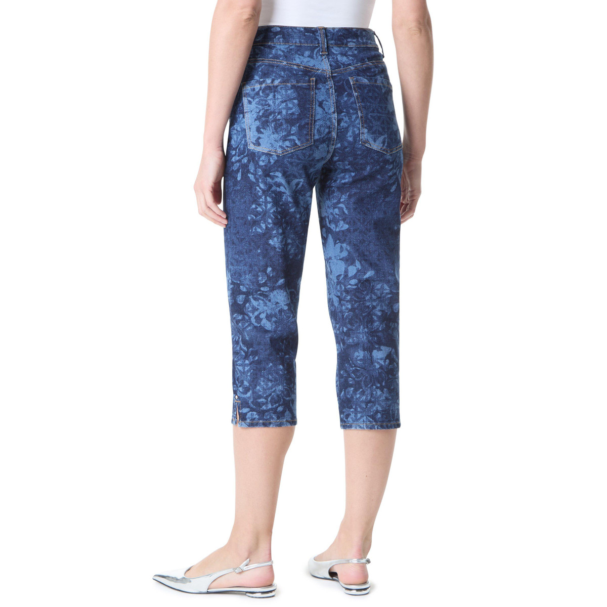 Brighten up your wardrobe with the Amanda Capris, featuring a playful print pattern and a classic 5-pocket design. Side hem splits add a touch of flair and ease of movement, while the flattering fit keeps you comfortable all day long. Perfect for adding personality to your everyday look, these capris are a stylish staple for sunny days. Fabrication is 98% cotton and 2% spandex.