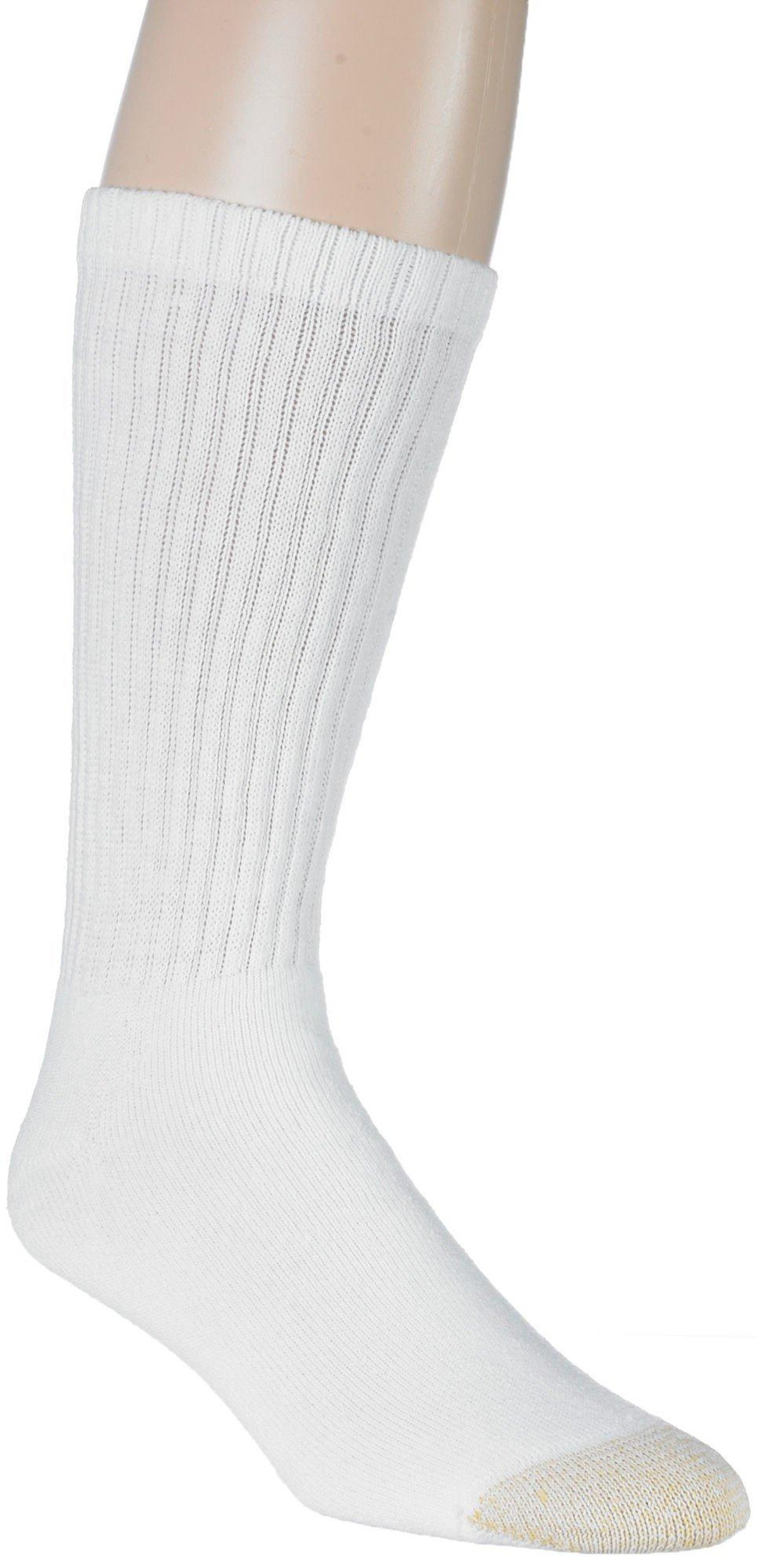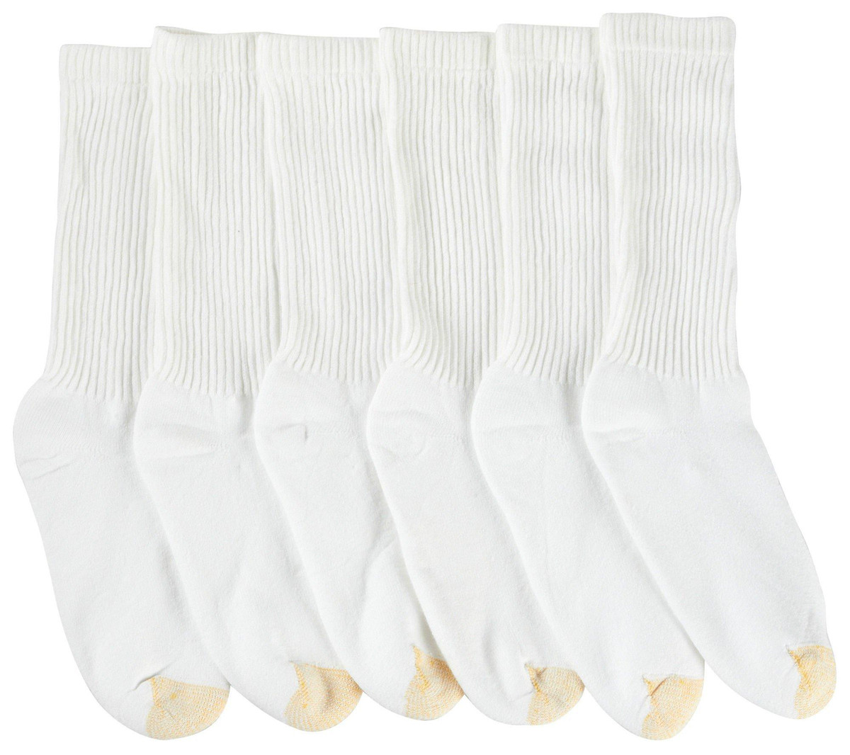 This package of six crew length socks by Gold Toe offers a comfortable cotton construction against your skin.