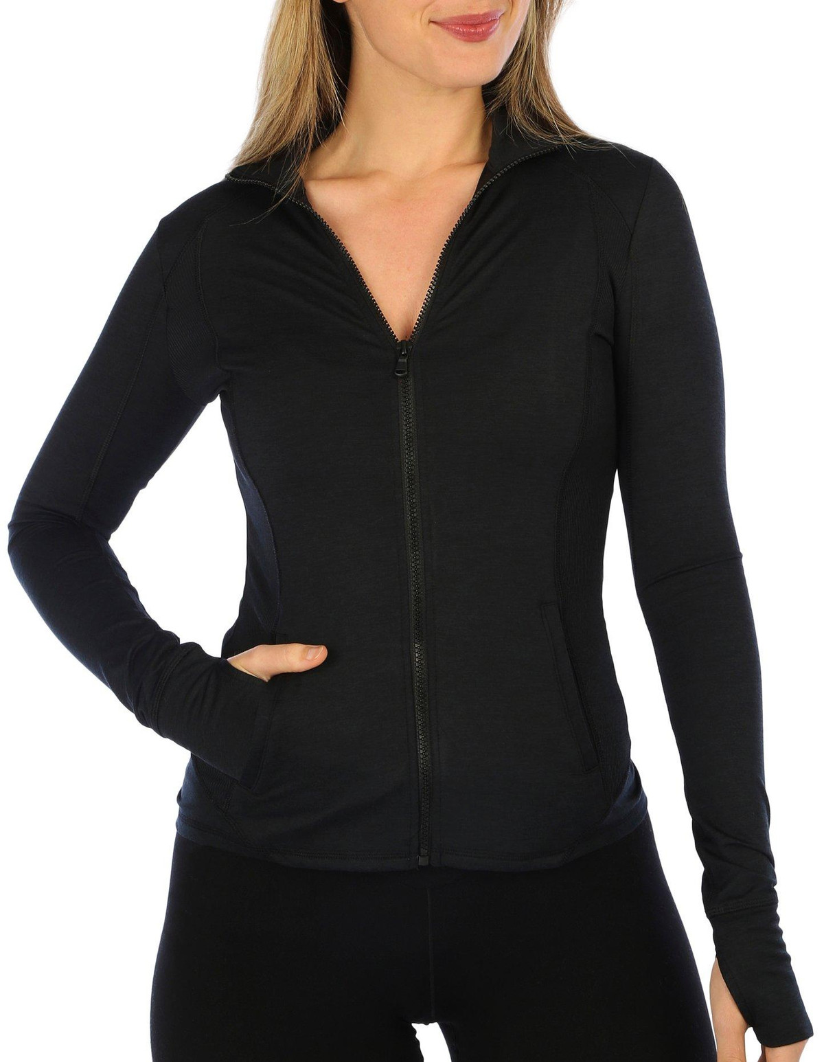 Introducing the Womens Active Flex Jacket, a perfect blend of style and functionality. This versatile piece features a chic solid color, a full front zip closure, and side slip pockets. Crafted from 100% polyester, it promises durability and comfort.