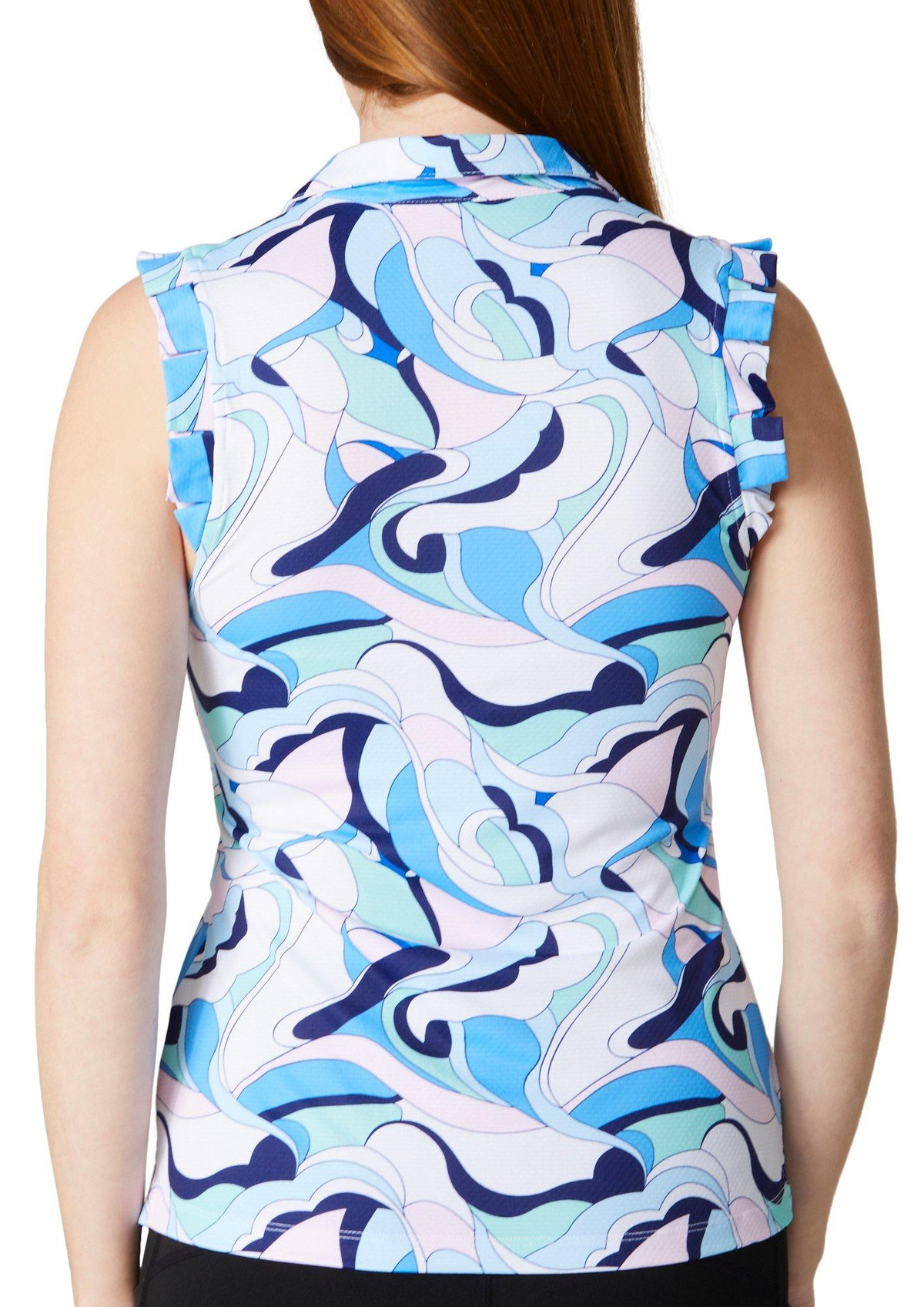 Brighten up your activewear collection with our Women’s Active Printed Sleeveless Shirt. Made from a comfortable polyester and spandex blend, this shirt offers flexibility and breathability. Featuring a stylish collared neckline, ruffle sleeves, and a colorful print, it’s perfect for workouts or casual outings. The top length measures approximately 24 in.
