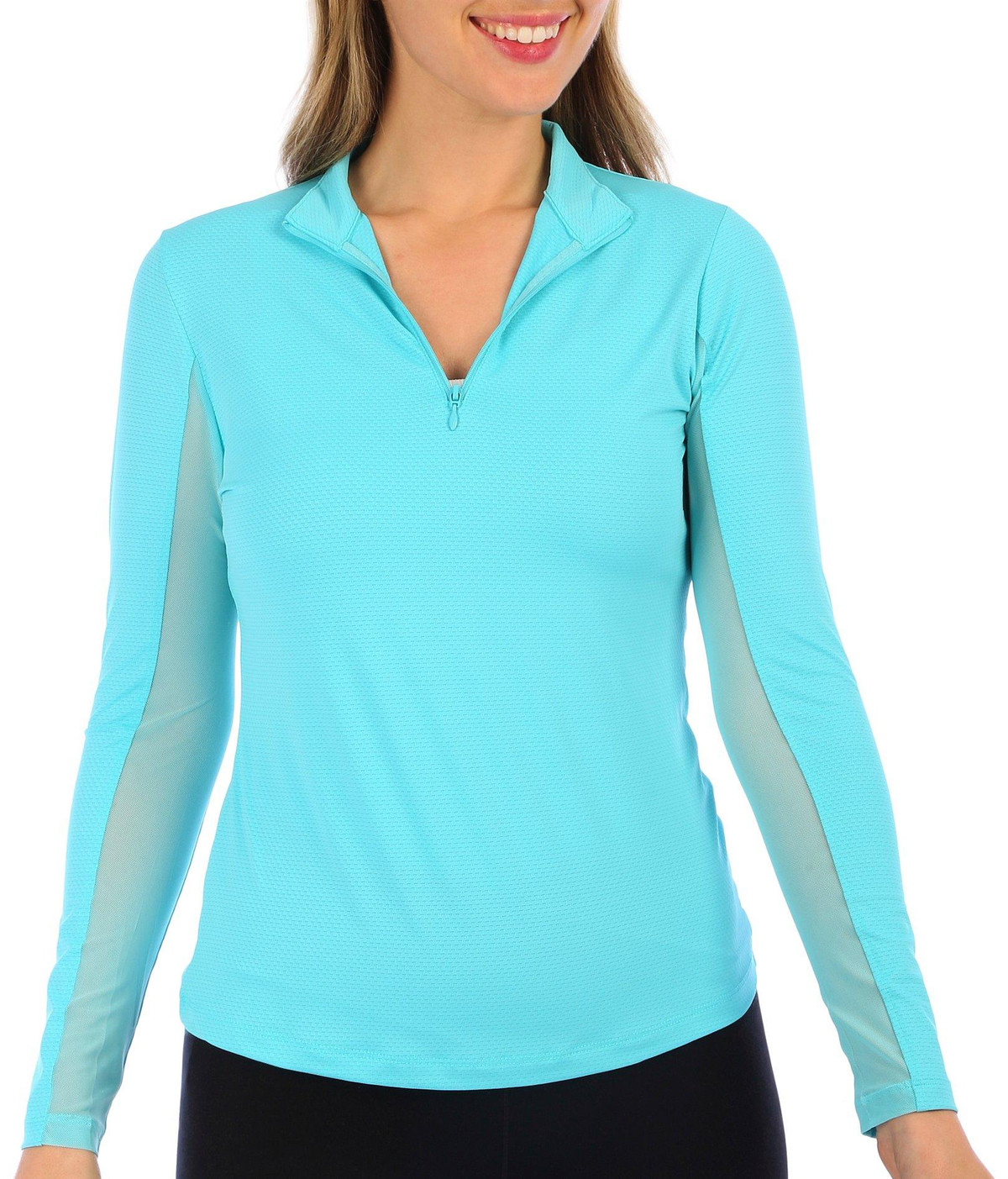 This women’s moisture-wicking active top features vented sleeves for added breathability, keeping you cool and comfortable during any activity. The 1/4 zip design allows for adjustable ventilation, while the sleek, athletic fit offers freedom of movement. Ideal for workouts, outdoor adventures, or casual wear.