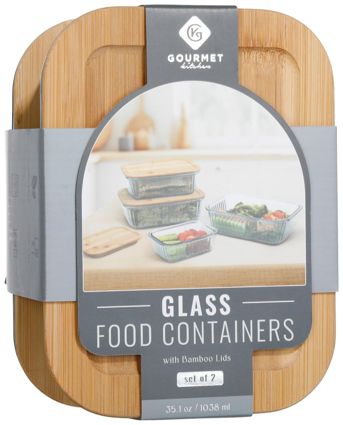 Keep food fresh and organized with this 2-pack glass storage set featuring eco-friendly bamboo lids. These containers are perfect for meal prep, leftovers, and on-the-go storage. Made from durable, stain- and odor-resistant glass, these containers are oven, microwave and dishwasher safe (not the lids). Measures approximately 8 in x 6 in x 2.5 in.