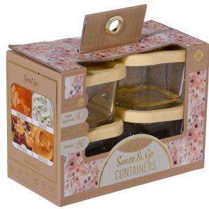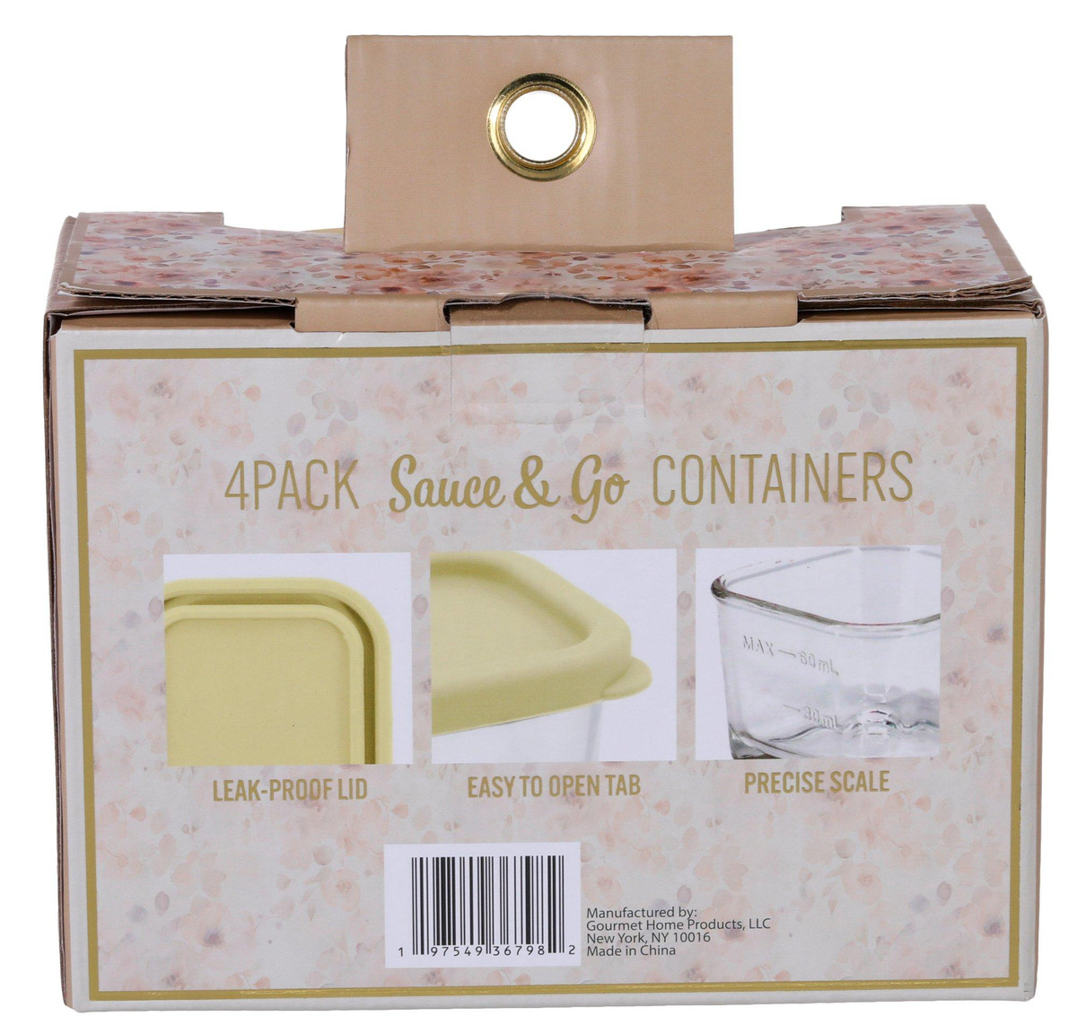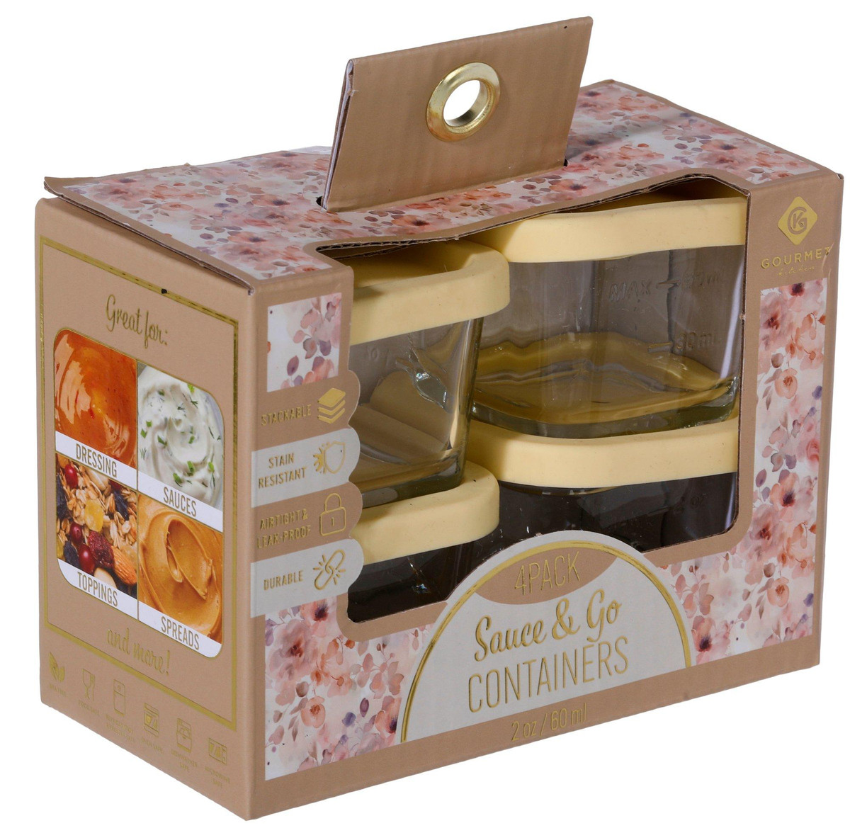 Keep condiments fresh and organized with this 4-pack 2 oz clear glass storage set featuring silicone lids. These bright yellow containers are perfect for dressing, sauces and spreads. Made from durable, stain- and odor-resistant glass, these containers are oven, microwave and dishwasher safe.