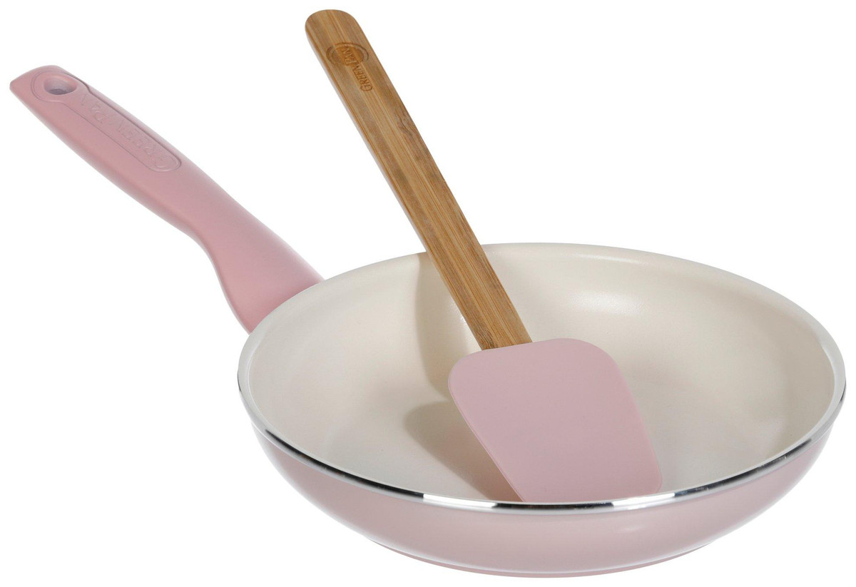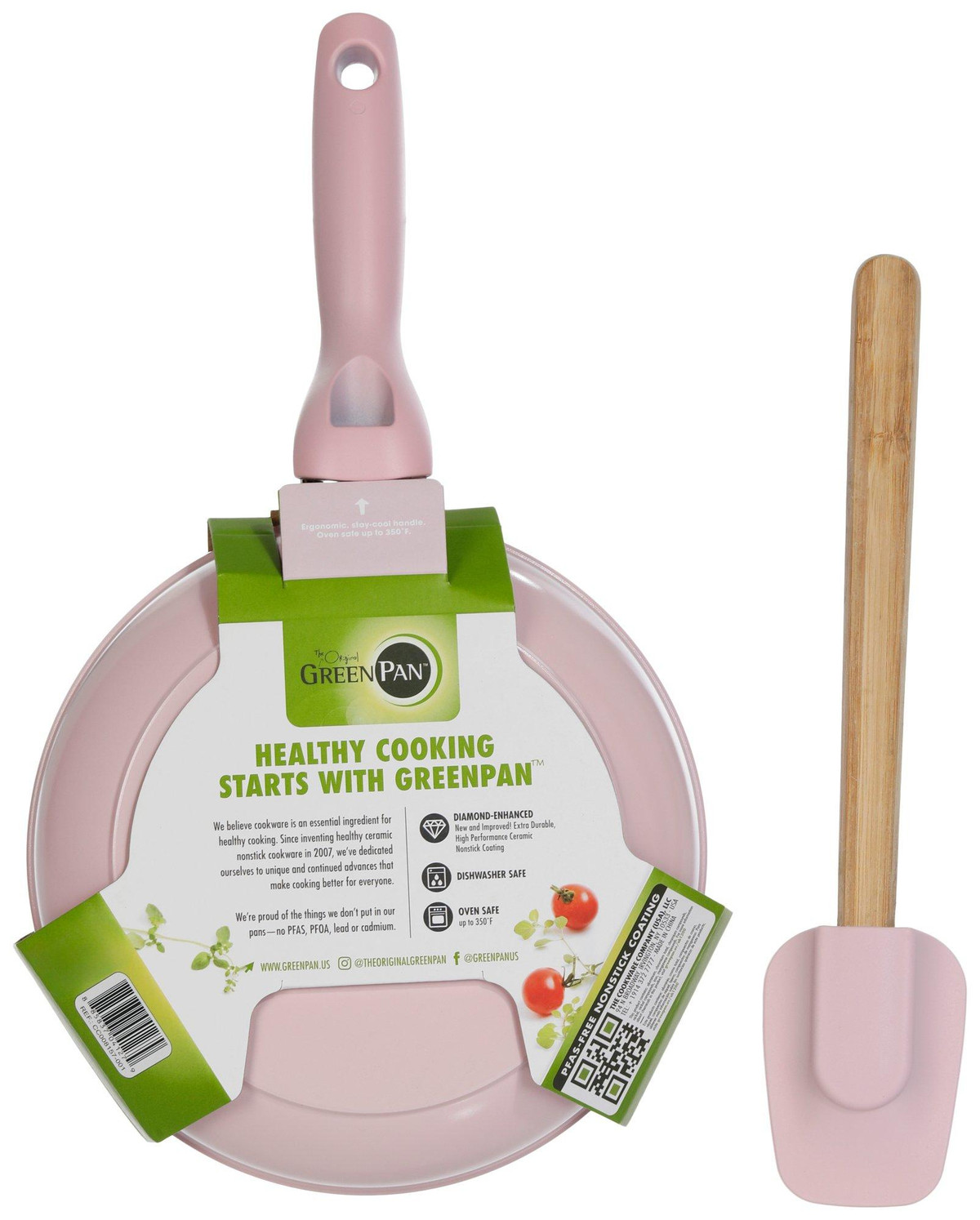 Elevate your everyday cooking with this versatile frypan set, perfect for scrambles, veggie sautés, and crispy fried fish. Featuring Thermolon healthy ceramic nonstick coating, these pans offer effortless food release and easy cleanupcompletely free of PFAS, PFOA, lead, and cadmium. The durable construction ensures even heat distribution, while the stay-cool handles provide a secure, comfortable grip on any stovetop. Includes spatula with a silicone head. Measures approximately 8 in.