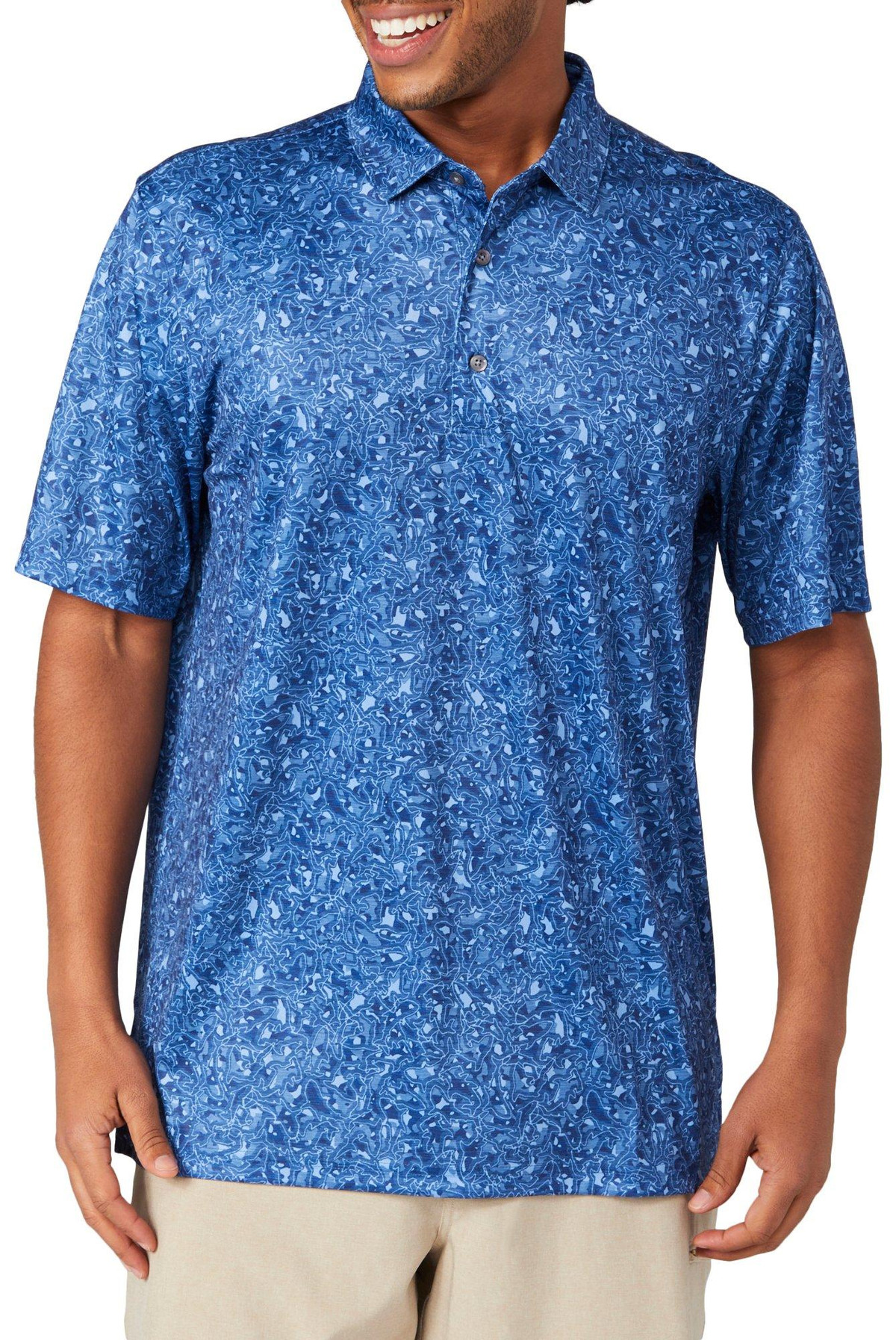 Introducing this stylish Short Sleeve Golf Polo Shirt, crafted from high-quality polyester for a comfortable and durable fit. This stylish polo features a striking print, a button placket, and a classic collared neckline. Designed with performance stretch technology, it ensures you stay comfortable on the golf course. Perfect for any golfer, this polo combines style, functionality, and comfort for your best game yet.