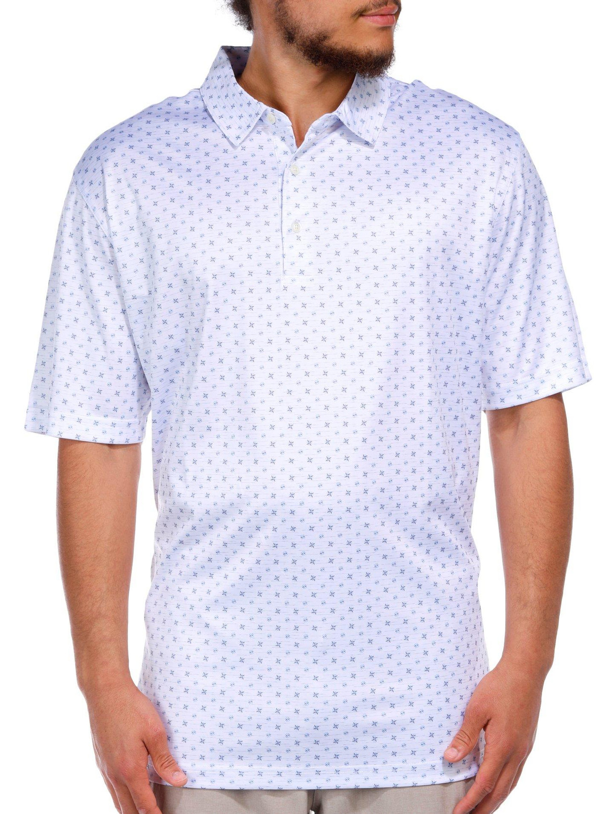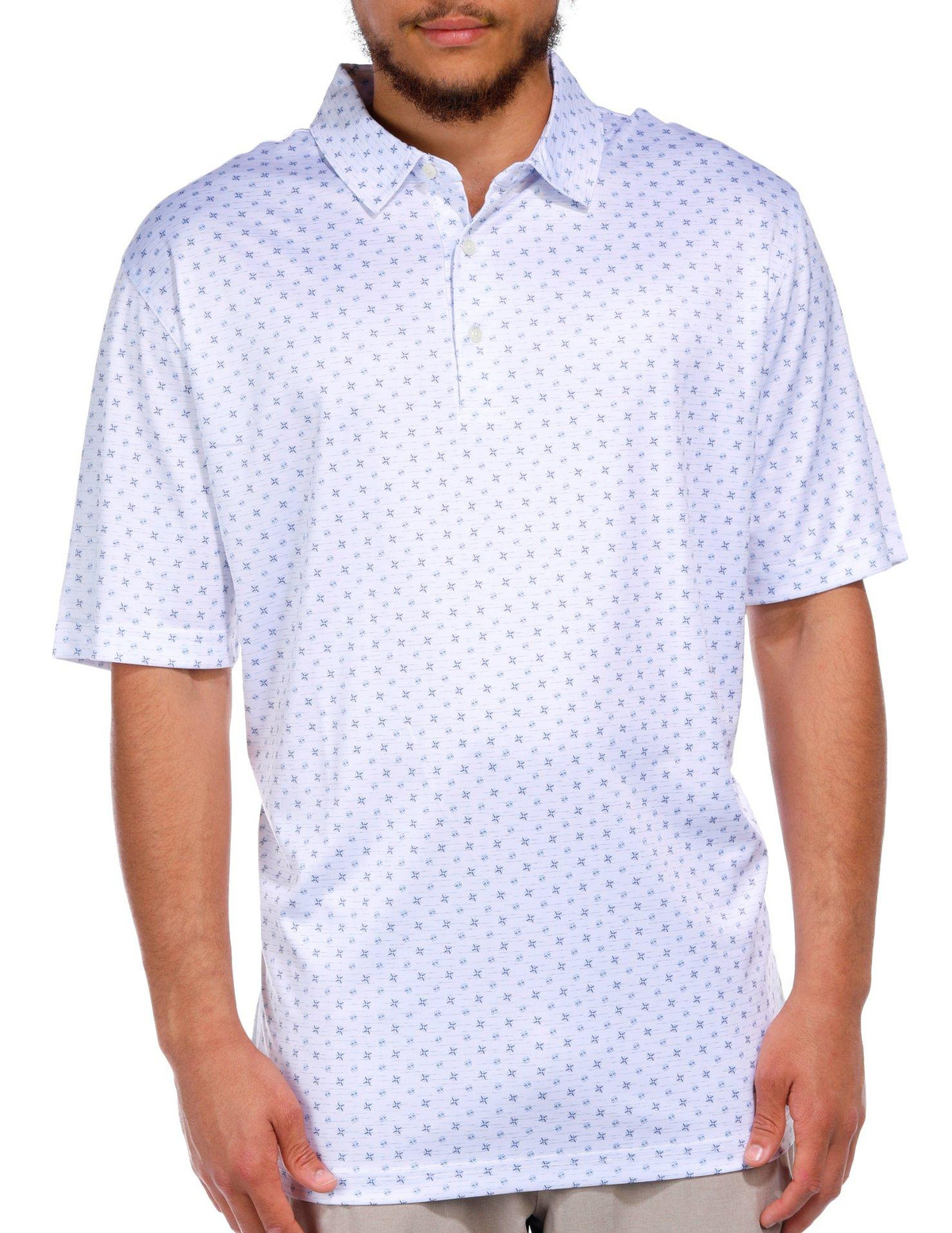 Stay cool and stylish in the Men’s Short Sleeve Print Polo Shirt, crafted from 100% polyester for lightweight comfort and moisture-wicking performance. Featuring a modern printed design, this polo is perfect for casual days, golf outings, or weekend wear with a polished, athletic edge.