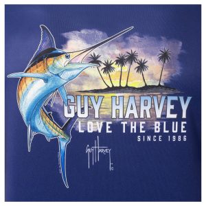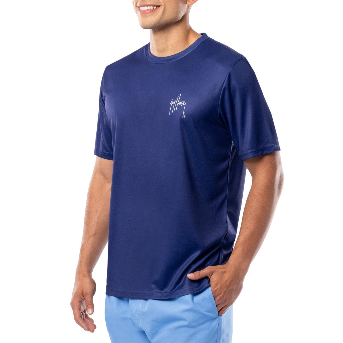 Guy Harvey features his award-winning marine artwork on this coastal short sleeve tee. It features lightweight breathable knit fabric, fish graphic on the back, and a flexible crew neckline.