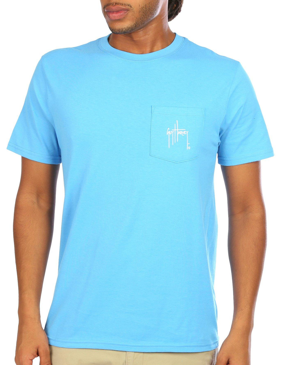 This short sleeve top features lightweight breathable cotton fabric, brand logo and graphic design on the back, a logo on the chest pocket, and a flexible crew neckline.