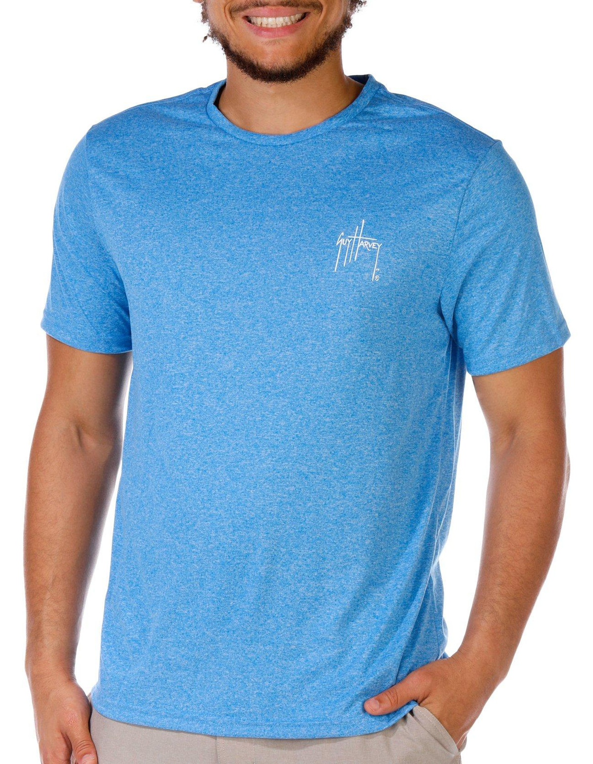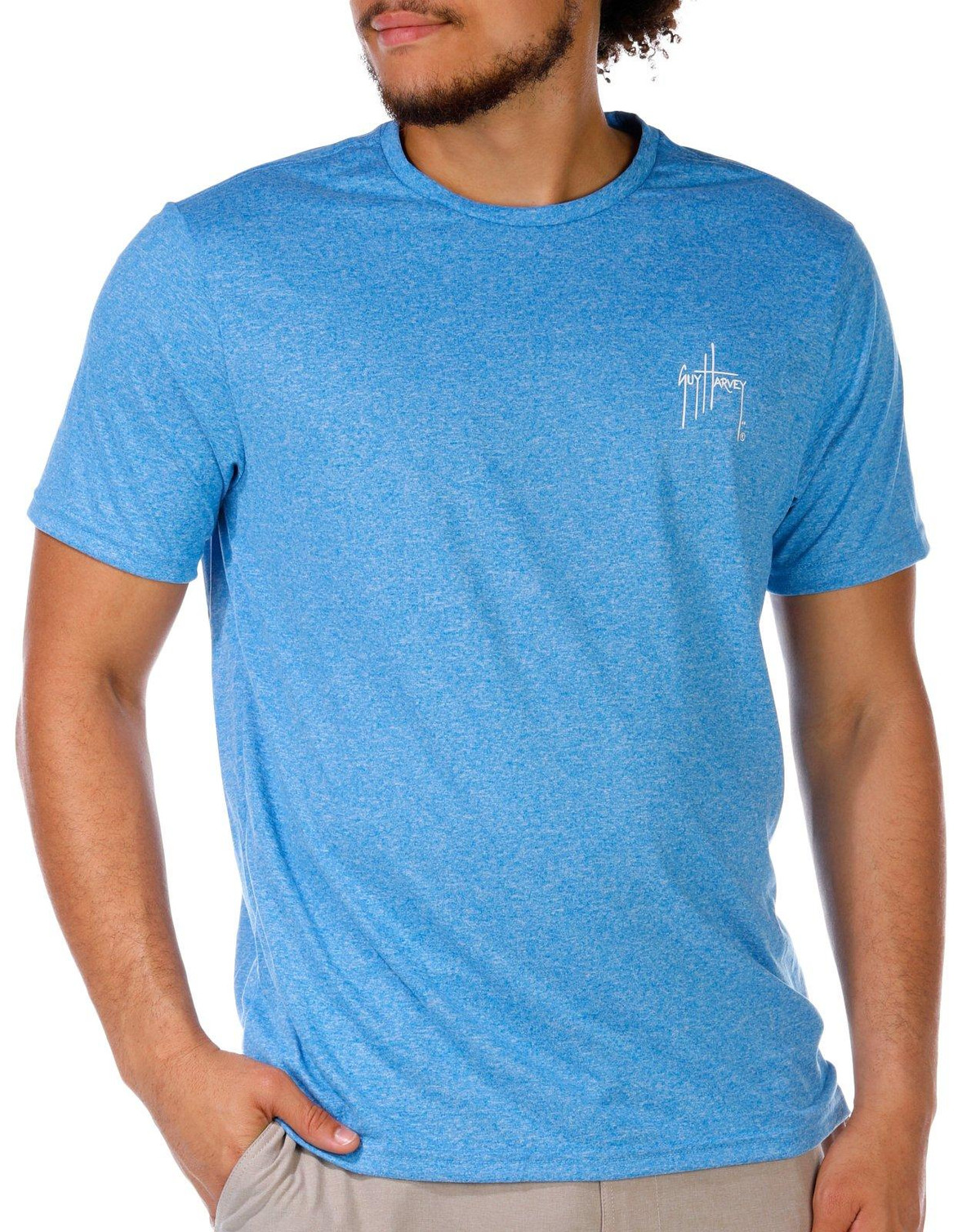 Display award-winning marine artwork on this stylish coastal short sleeve tee. This short sleeve tee features a lightweight breathable fabric, an original brand Guy Harvey performance saltwater gear and graphic design on the back, Guy Harvey brand logo on the chest, tag less for comfort, and a flexible crew neckline.