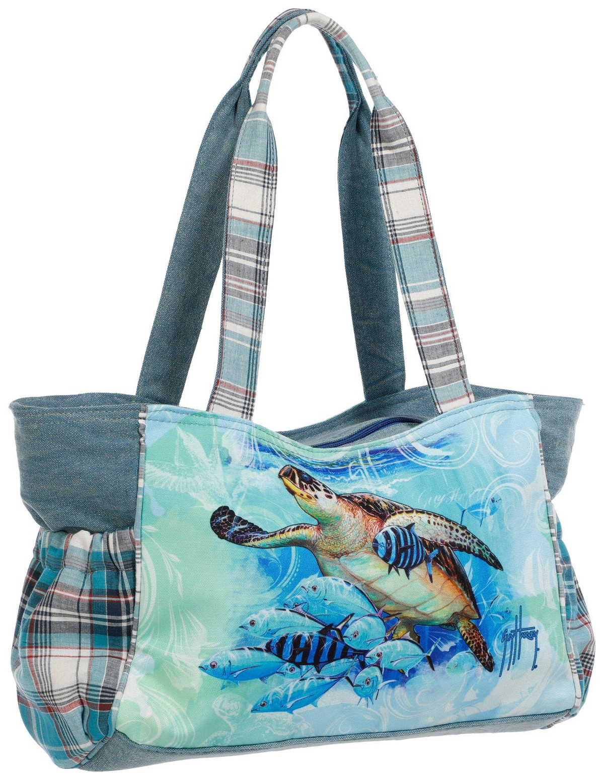 Breeze through summer with this beautifully crafted beach tote, designed for both style and function, with a stunning ocean and turtle design. Featuring comfy shoulder straps, a secure zippered top and a spacious interior, it keeps your essentials organized with a zippered pocket. Whether you’re seaside or city-bound, this tote is your perfect sunny-day companion. Measures approximately 14 in x 10 in x 5.5 in.
