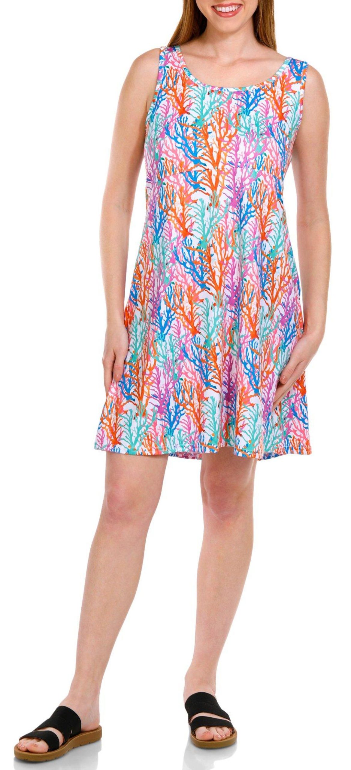 Stay active and stylish with the Women’s Active Coral Print Sleeveless Dress. Made from a blend of polyester and spandex, this dress offers performance stretch, moisture-wicking properties, and UPF 40 protection. The vibrant coral print adds a touch of flair, while the sleeveless design ensures comfort and ease of movement. Perfect for any outdoor activity, this dress combines functionality and fashion effortlessly.
