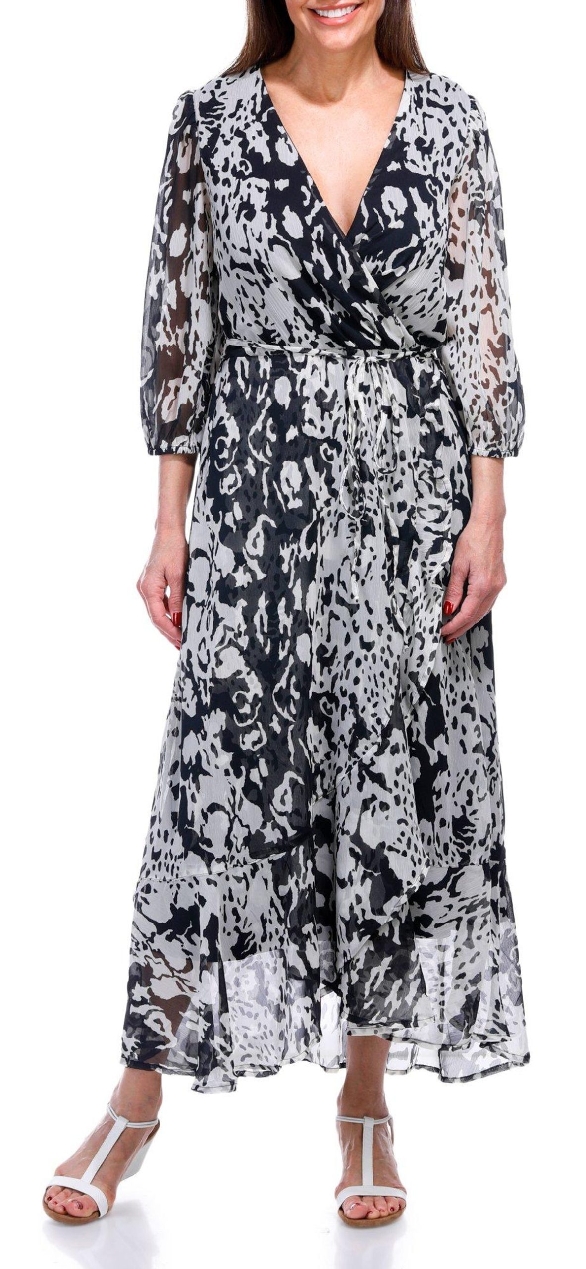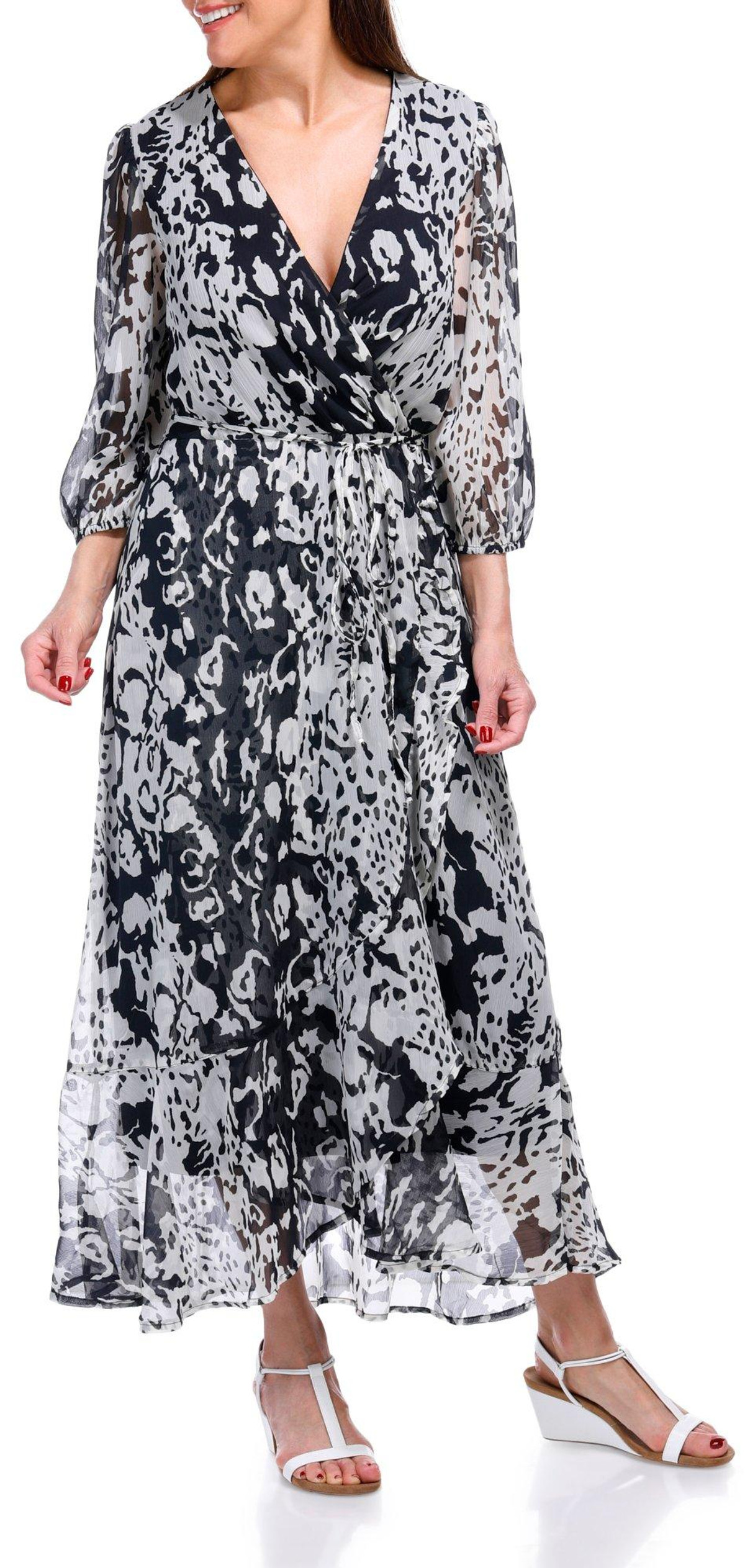 Embrace timeless elegance with this Long Sleeve Maxi Dress. Featuring a beautiful print and a surplice top, this dress offers a sophisticated and flattering fit. The waist tie accentuates your silhouette, while the ruffle accents add a touch of charm. Fully lined for comfort, this dress is perfect for both casual and dressy occasions. Enjoy the perfect blend of style and grace with this versatile maxi dress.