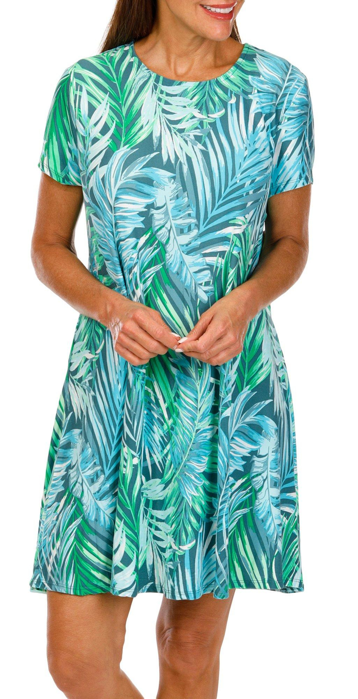 The Women’s Short Sleeve Swing Dress combines comfort and style with its flowy silhouette and tropical print. Designed to flatter every body type, this dress offers a relaxed fit and soft fabric that moves with you. Perfect for warm weather, it is ideal for casual outings or dressing up for special occasions. Fabrication is 92% polyester, 8% spandex.