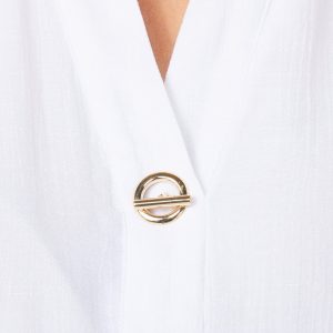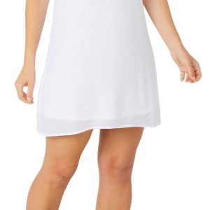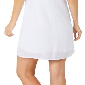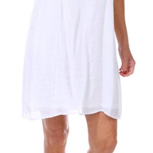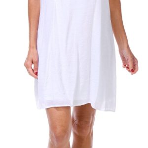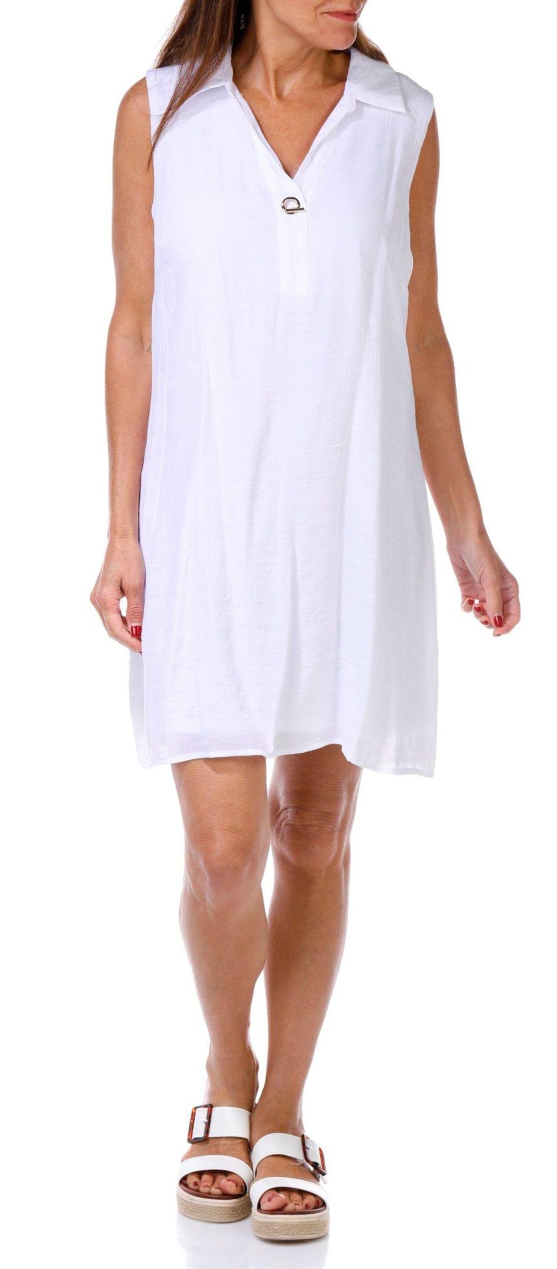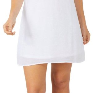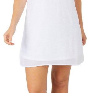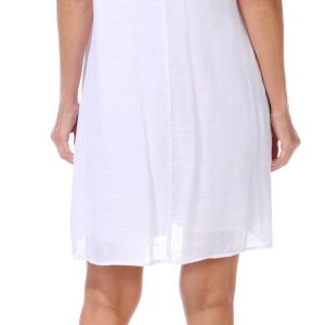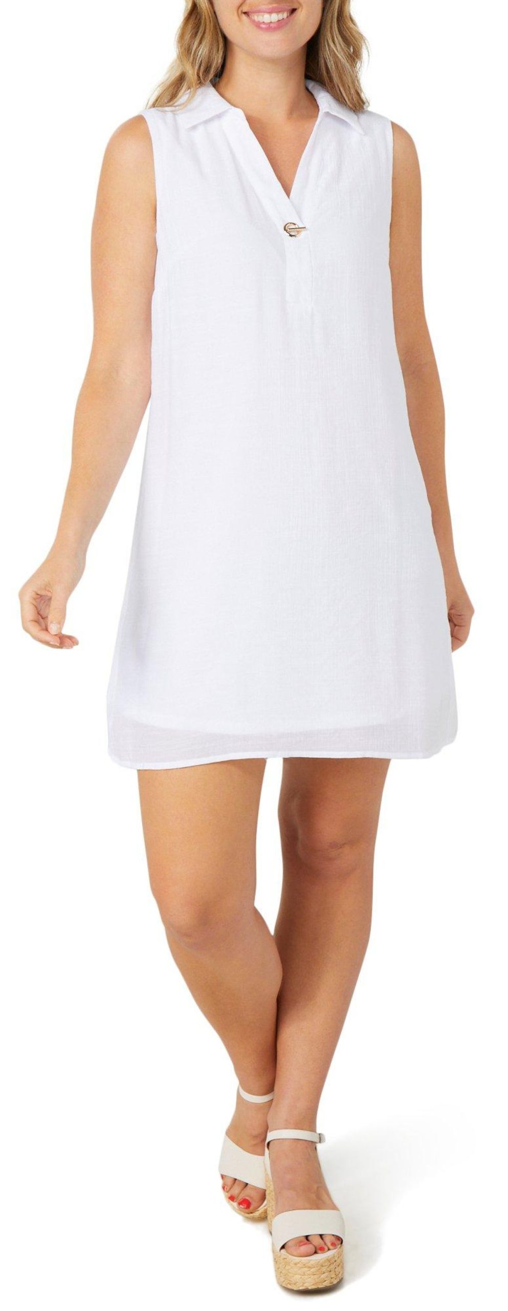 This womens sleeveless papaya gauze dress features a solid color with a collared neckline accented in gold. Designed with a breezy 34 inch length, it offers a light and stylish look perfect for warm days and casual outings.