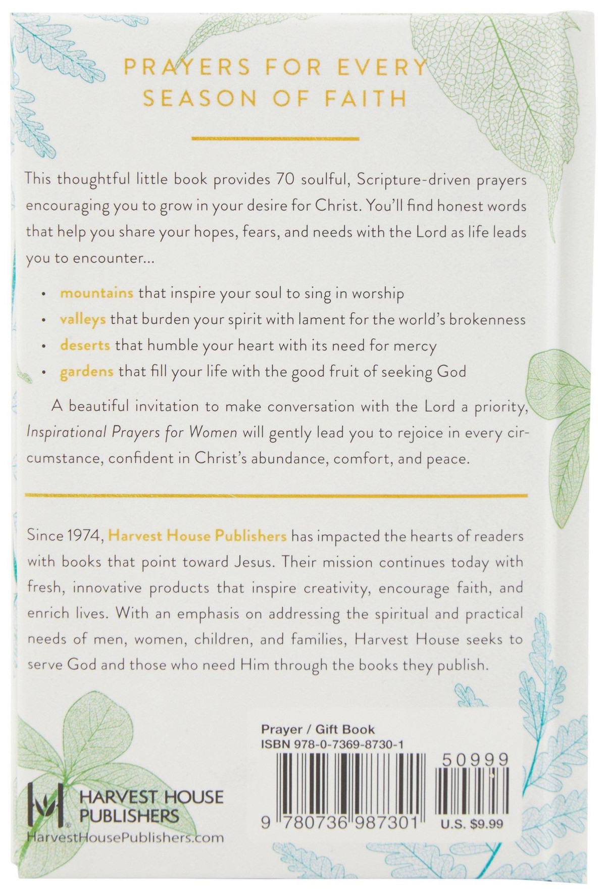 This thoughtful little book provides 70 soulful, Scripture-driven prayers encouraging you to grow in your desire for Christ. Youll find honest words that help you share your hopes, fears, and needs with the Lord as life leads you to encounter mountains, valleys, deserts and gardens. This book will help you to rejoice in every circumstance, confident in Christs abundance, comfort, and peace. Measures approximately 6 in x 4 in.