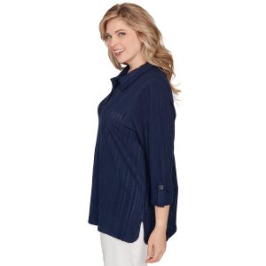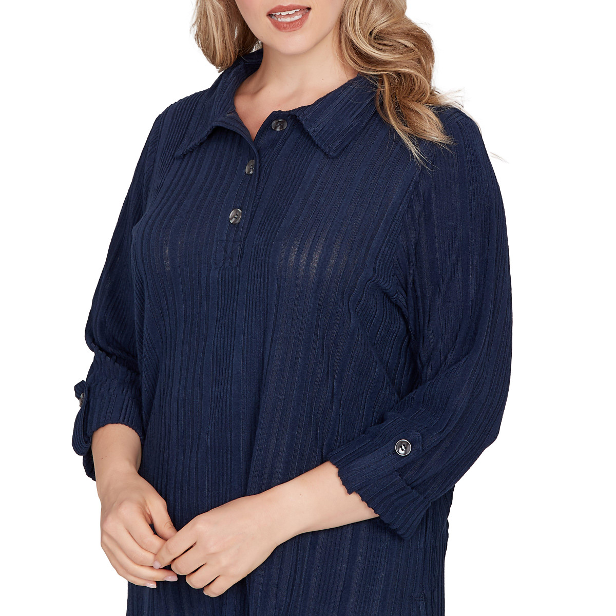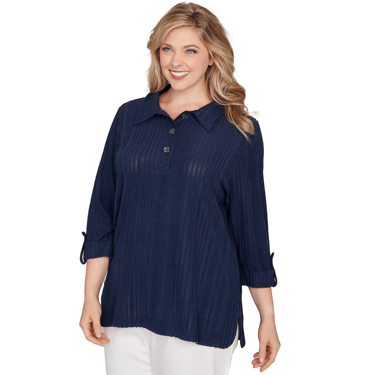 Stay stylish and comfortable in the Hearts Of Palm Henley tunic, crafted from soft textured hatchi fabric. Featuring 3/4 roll-tab sleeves and a flattering silhouette, this solid top blends laid-back charm with everyday versatility. Perfect for effortless, polished looks. The top length measures 30 in. Fabrication 97% polyester, 3% spandex.