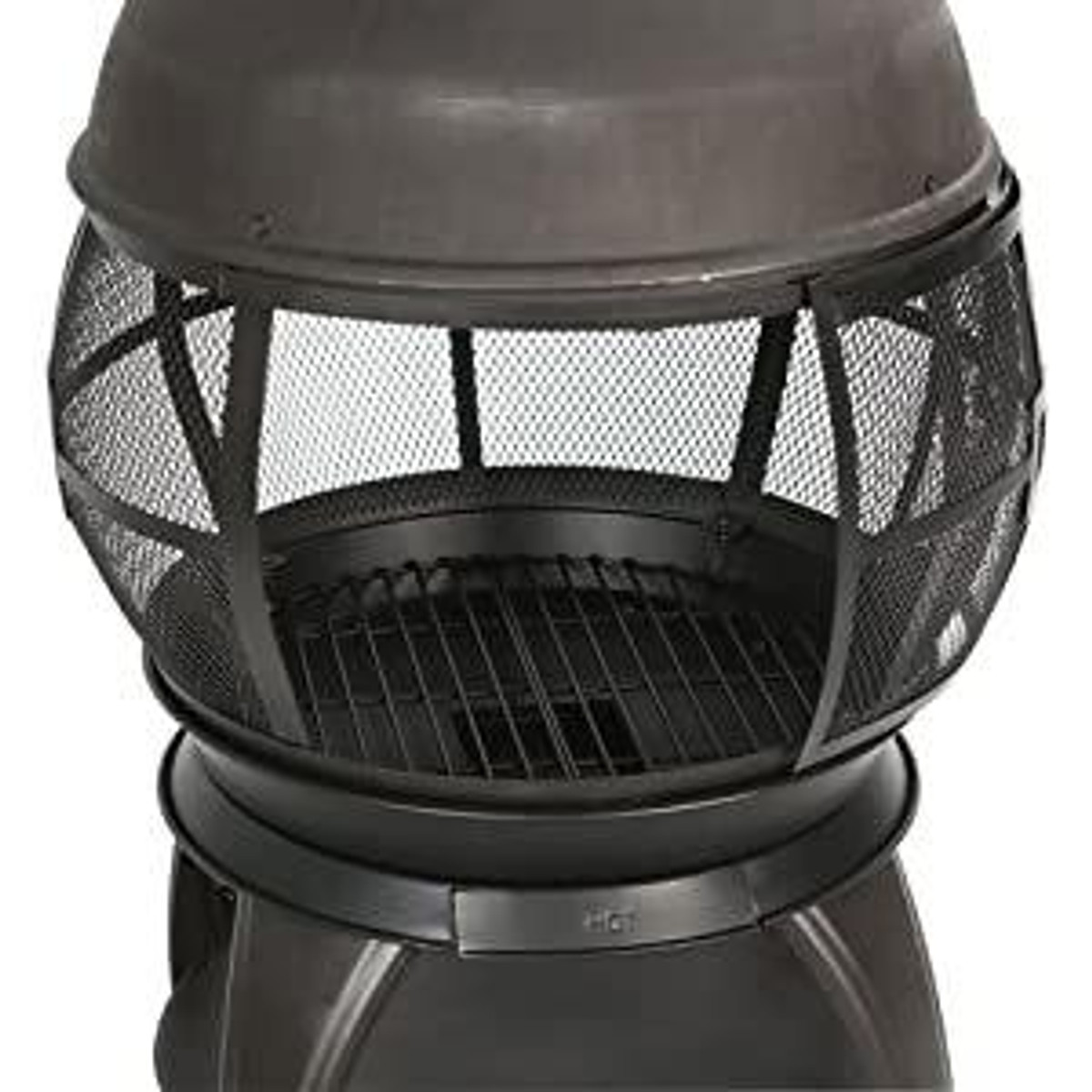 The Heat Maxx elegant classic 45 in. Cast Iron Wood Burning Chiminea boasts heavy-duty cast-iron construction in a timeless hourglass shape. Coated with high-temperature paint, it ensures durability and rust prevention. The built-in log storage beneath the fire bowl adds convenience, while the removable ash catcher makes cleanup a breeze. Easy to assemble with minimal tools, it accommodates both firewood and artificial logs. A metal fire poker is included. Measures 22 in. diameter x 45 in. H.