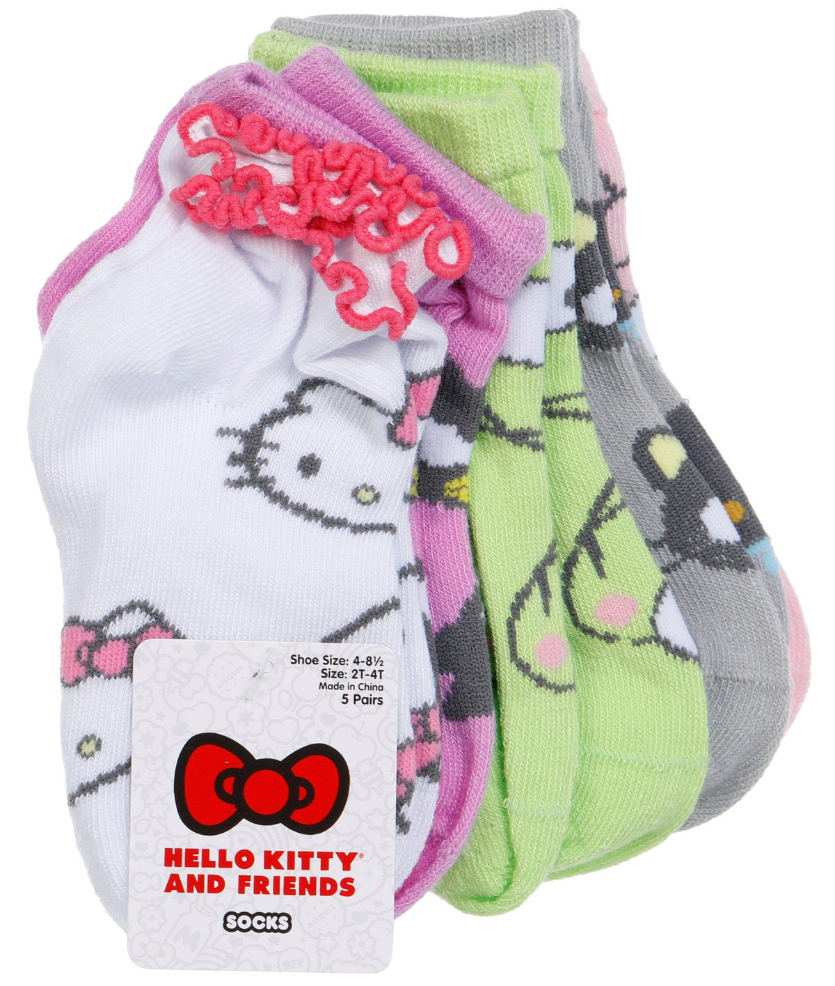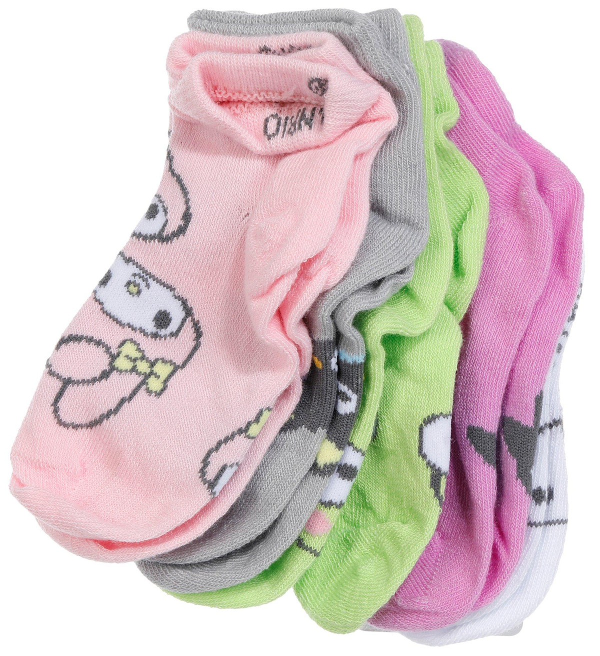 These Little Girls Hello Kitty No-Show Socks come in a fun and colorful pack designed to fit shoe sizes 48.5 and toddler sizes 2T4T. Made with soft, stretchy fabric, they offer a snug, comfortable fit that stays hidden under shoes. Perfect for everyday wear, these socks feature playful Hello Kitty graphics that add charm to any outfit.