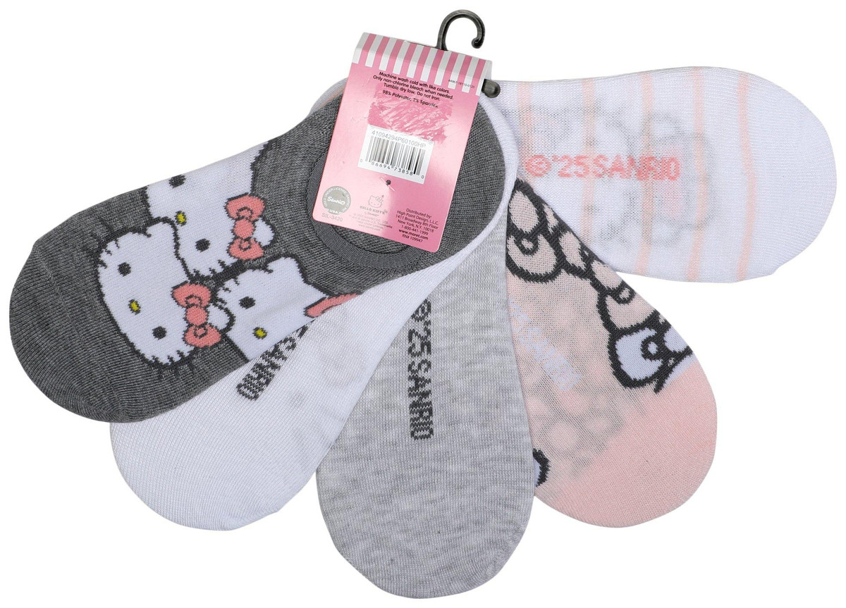 Step into cuteness with this Hello Kitty 5-pair no-show sock set! Featuring assorted Hello Kitty patterns in stylish pinks and greys, these socks bring fun and comfort to every step. Designed for girls, they fit shoe sizes 4-10 and sock sizes 9-11, making them perfect for everyday wear. Soft, cozy, and full of charm, this set is a must-have for Hello Kitty fans who love adding a playful touch to their outfits!