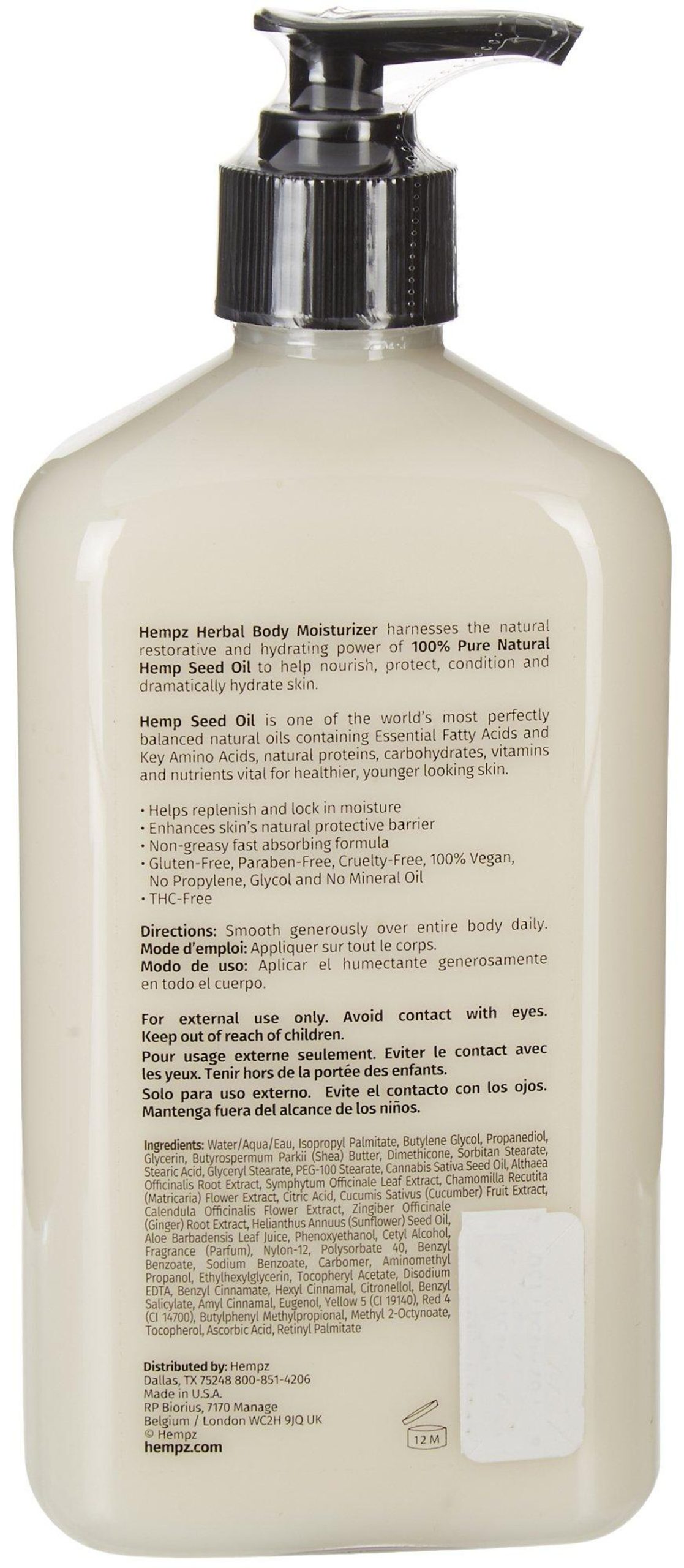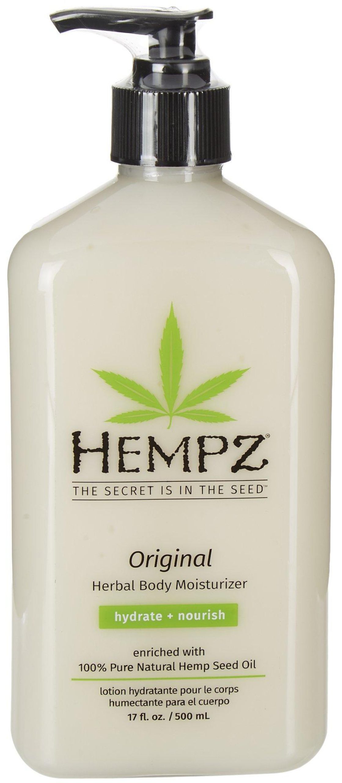 Hempz the secret is in the seed. Enriched with 100% pure hemp seed oil. 17 fl. oz.