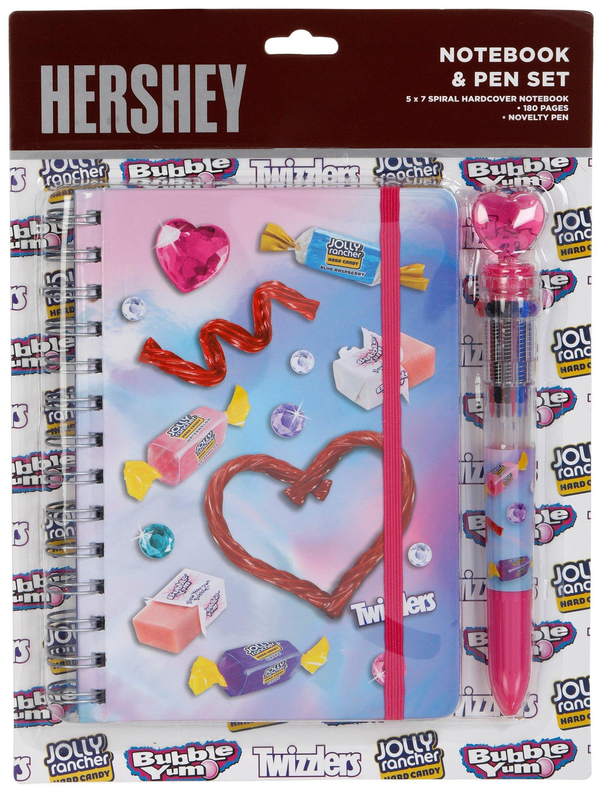 Add a playful pop to your desk with the Hershey Candy Notebook and Pen Set, featuring bold designs with Jolly Rancher, Bubble Yum and Twizzlers. This fun set includes a spiral-bound notebook, with 180 pages, and a novelty 10-color pen. Perfect for school, journaling or gifting, it brings sweet style and vibrant energy to your everyday notes. For ages 3+.