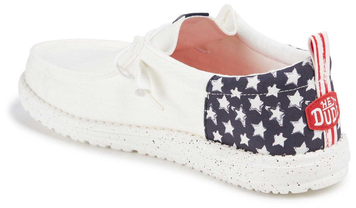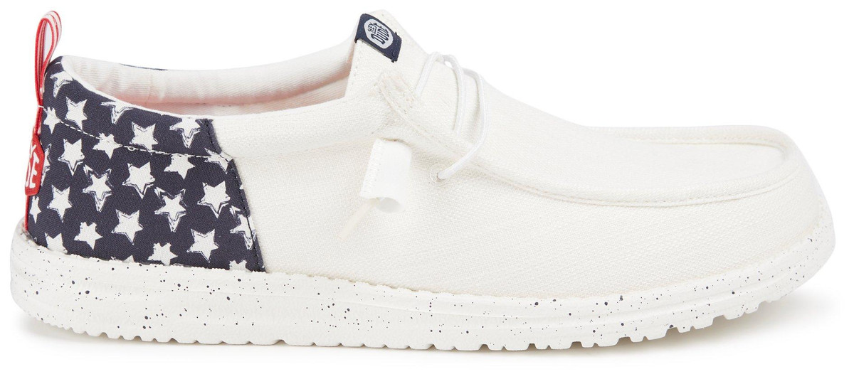 These stylish slip-on shoes feature a bold and patriotic pattern, durable rubber outsole, and a soft and comfortable footbed.