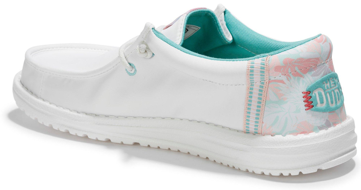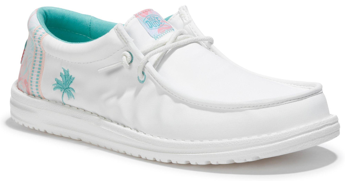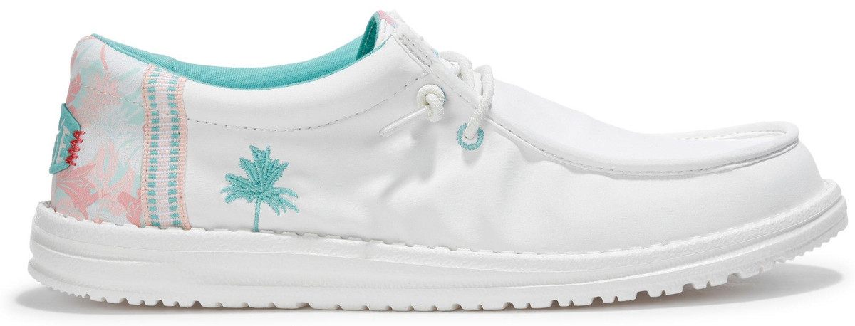 Get ready to put a little paradise in every step with the HEYDUDE Wally Greetings FL Casual Shoes! These tropical kicks feature a breezy white upper, teal lining, and a playful palm tree embroidery thats ready for sunshine-filled adventures. Whether you’re cruising through the day or kicking back, these shoes bring comfort and style with every strideyour feet will thank you!