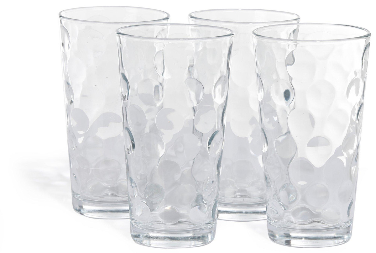This Cyprus set of 4 glass coolers features extra durable construction for everyday use and lasting performance. Ideal for serving water, iced tea or cocktails, this glassware combines strength with a sleek modern design. Perfect for casual dining or entertaining, this set brings clarity and style to any occasion. Capacity is 17 OZ for each glass.