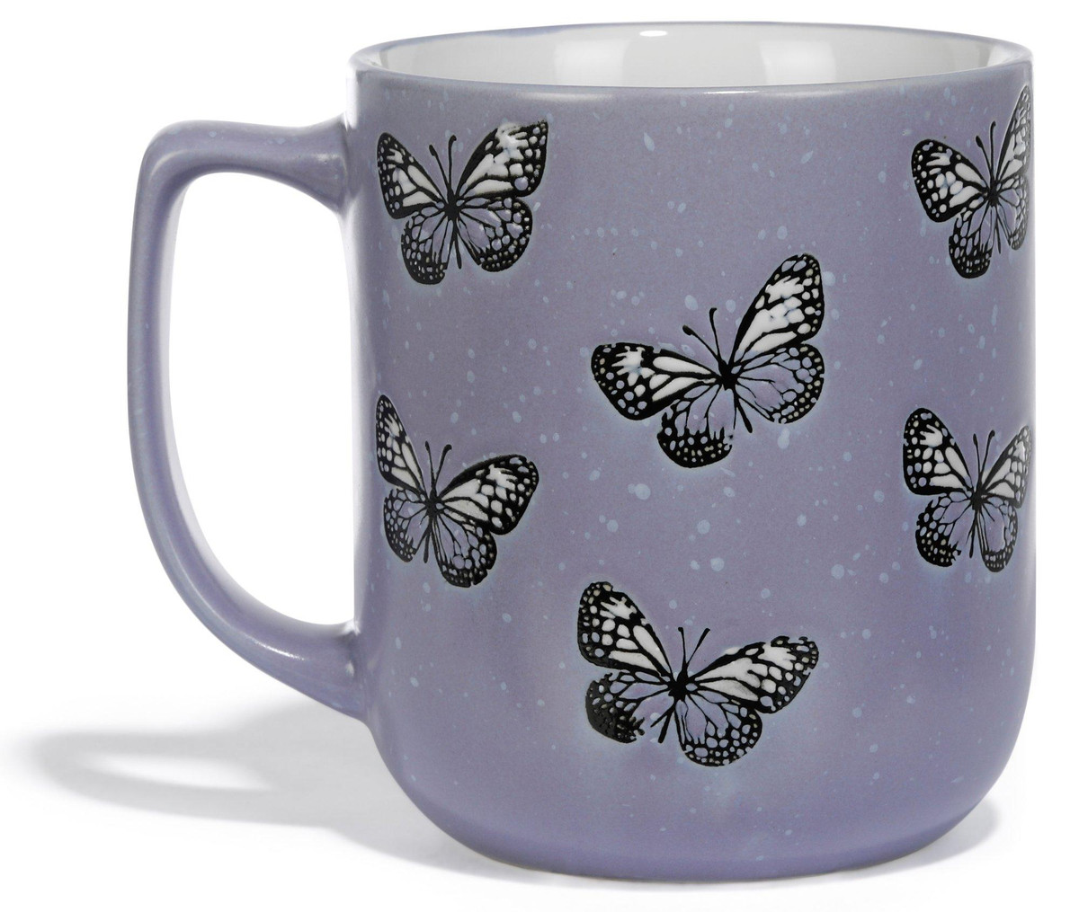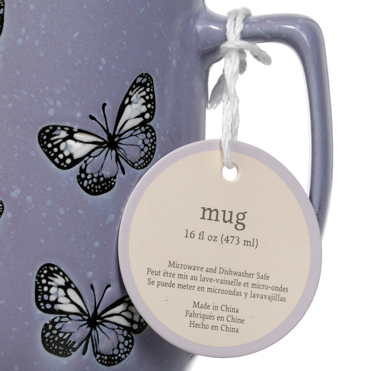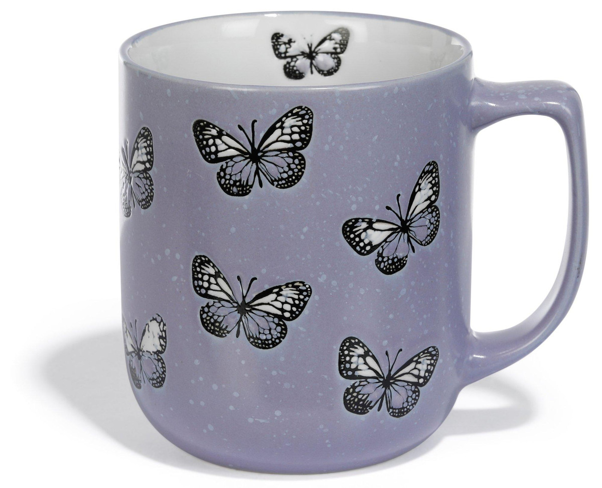 Home Essentials 16 Oz Butterflies on Lilac Speckled Mug
