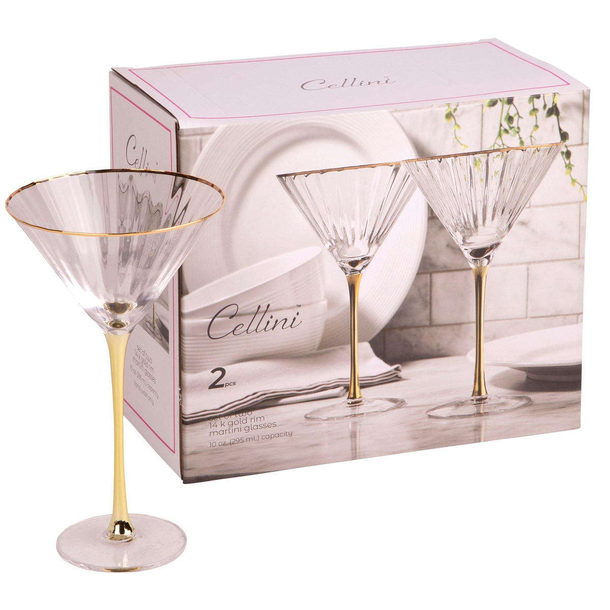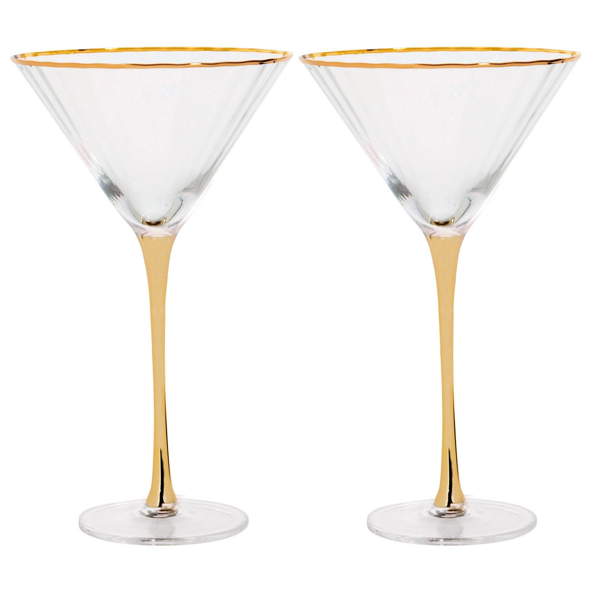 Home Essentials 2 Pk Gold Rim Martini Glasses