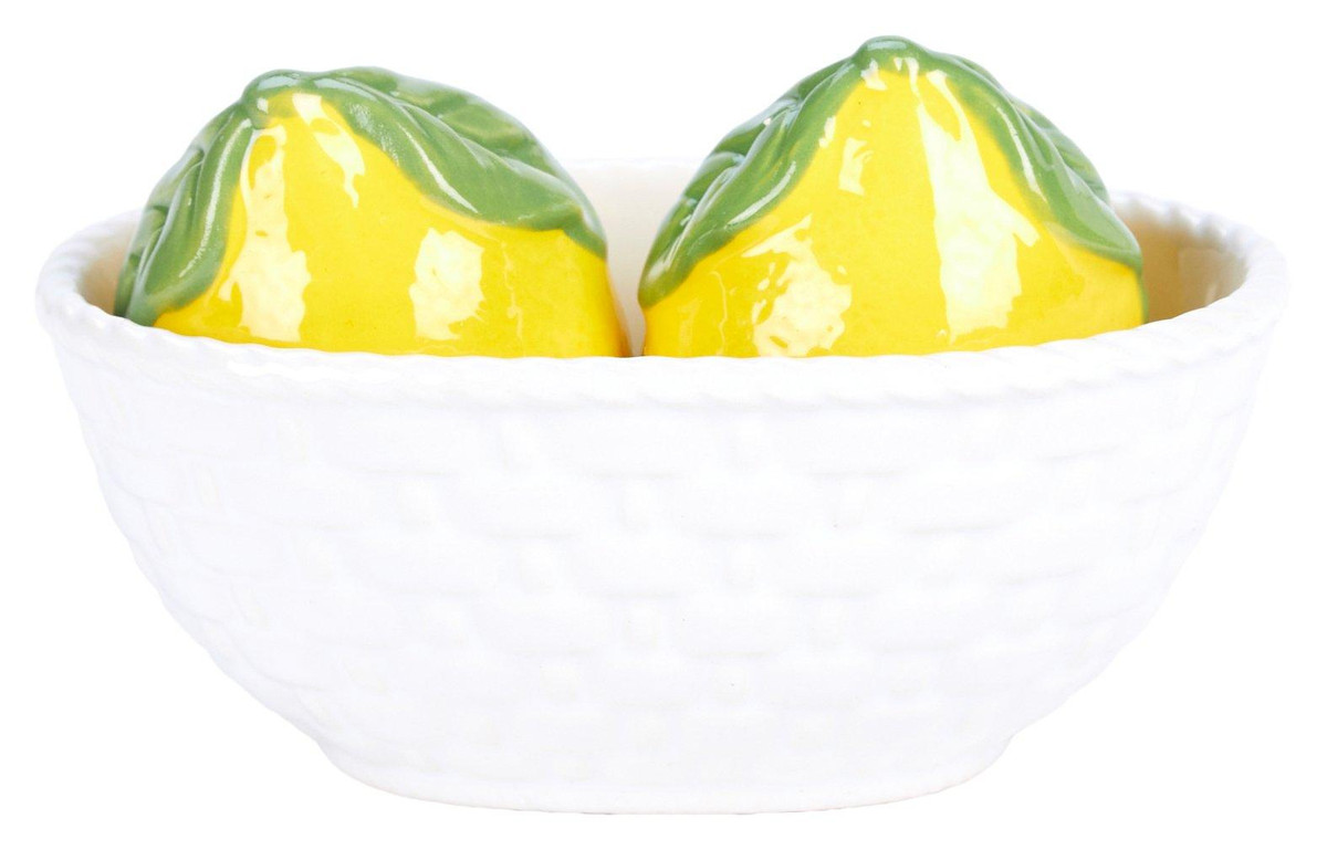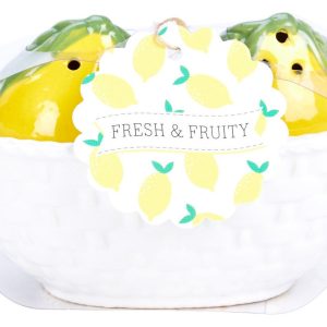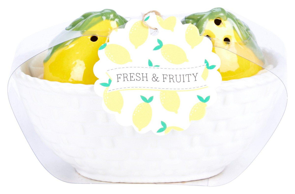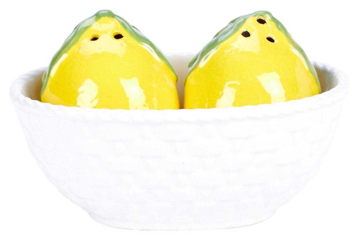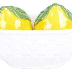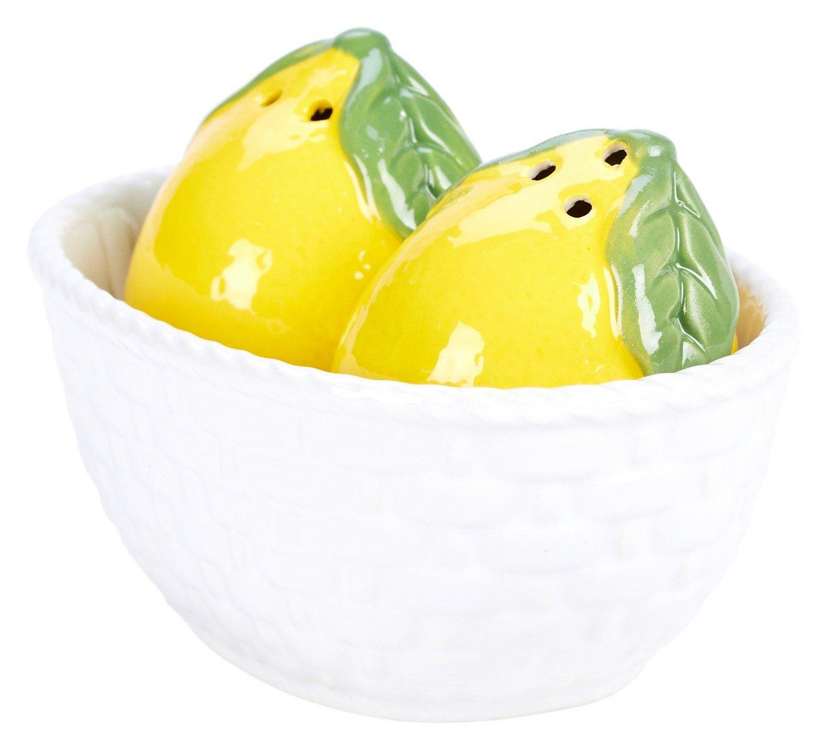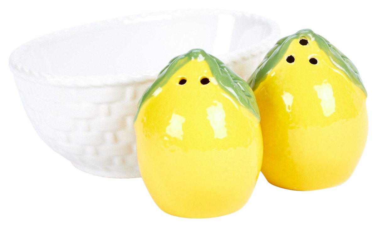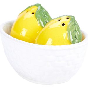 Add a zest of charm to your table with the 3 Piece Lemon Salt & Pepper Shakers set. Made of ceramic, these delightful shakers are shaped like lemons and come with a basket caddy for easy storage and display. Measuring 2.5 inches, they are perfect for adding a touch of whimsy to your dining decor. Ideal for both everyday use and special occasions, this set combines functionality with playful design, making it a must-have for any kitchen.