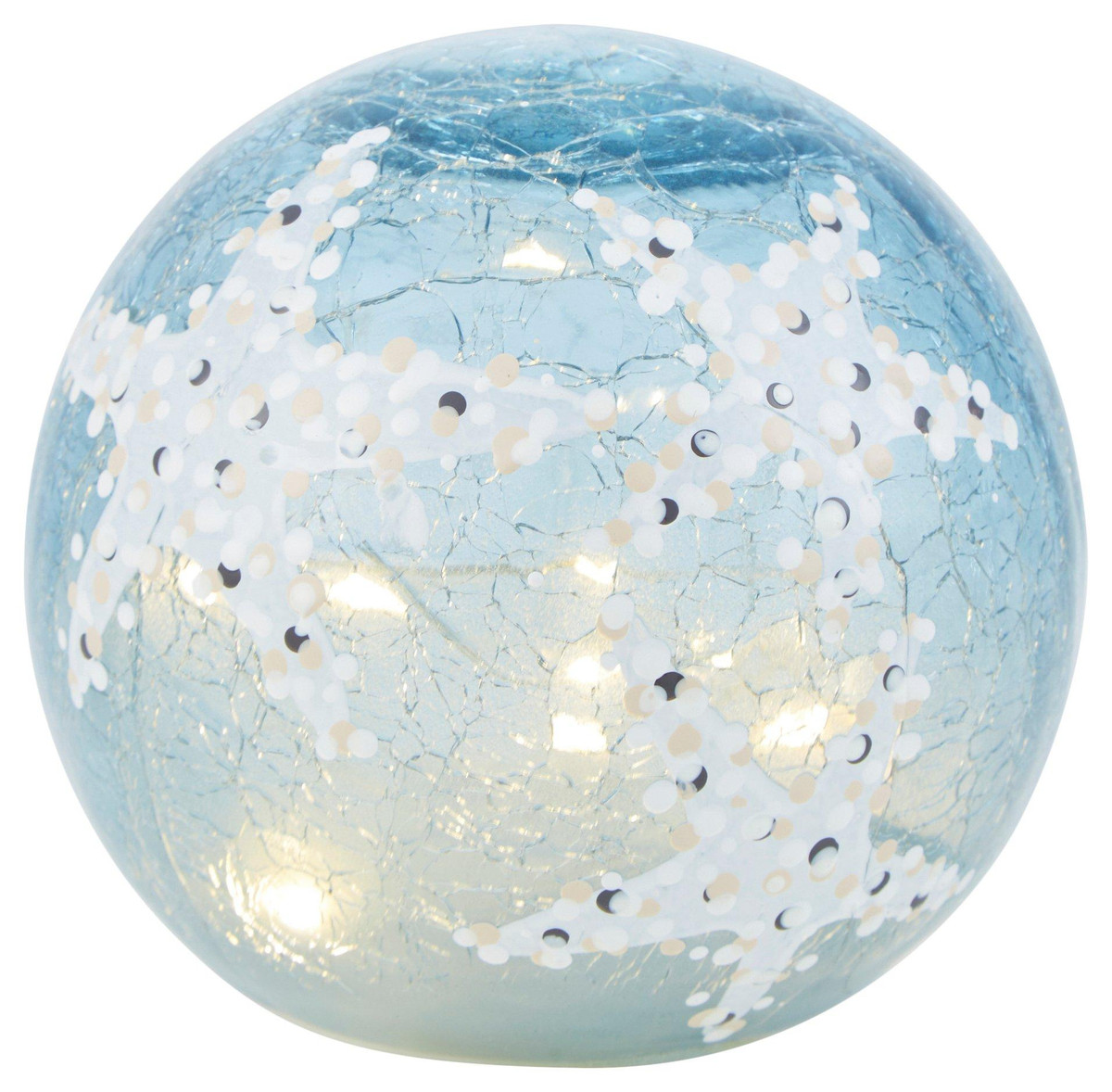 Lit from within by starry lights, this mini orb features a handpainted design with a crackled glass finish. Measures 4.7 in x 4.7 in x 4 in.
