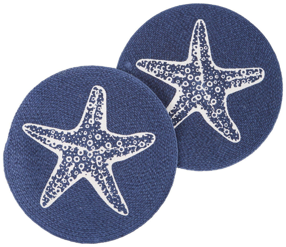 Homewear Linens provides table linens, kitchen textiles, and other fabric home accessories with fresh, innovative designs. This two pack placemat set features a fun coastal starfish design. Each measures 15”Dia.
