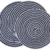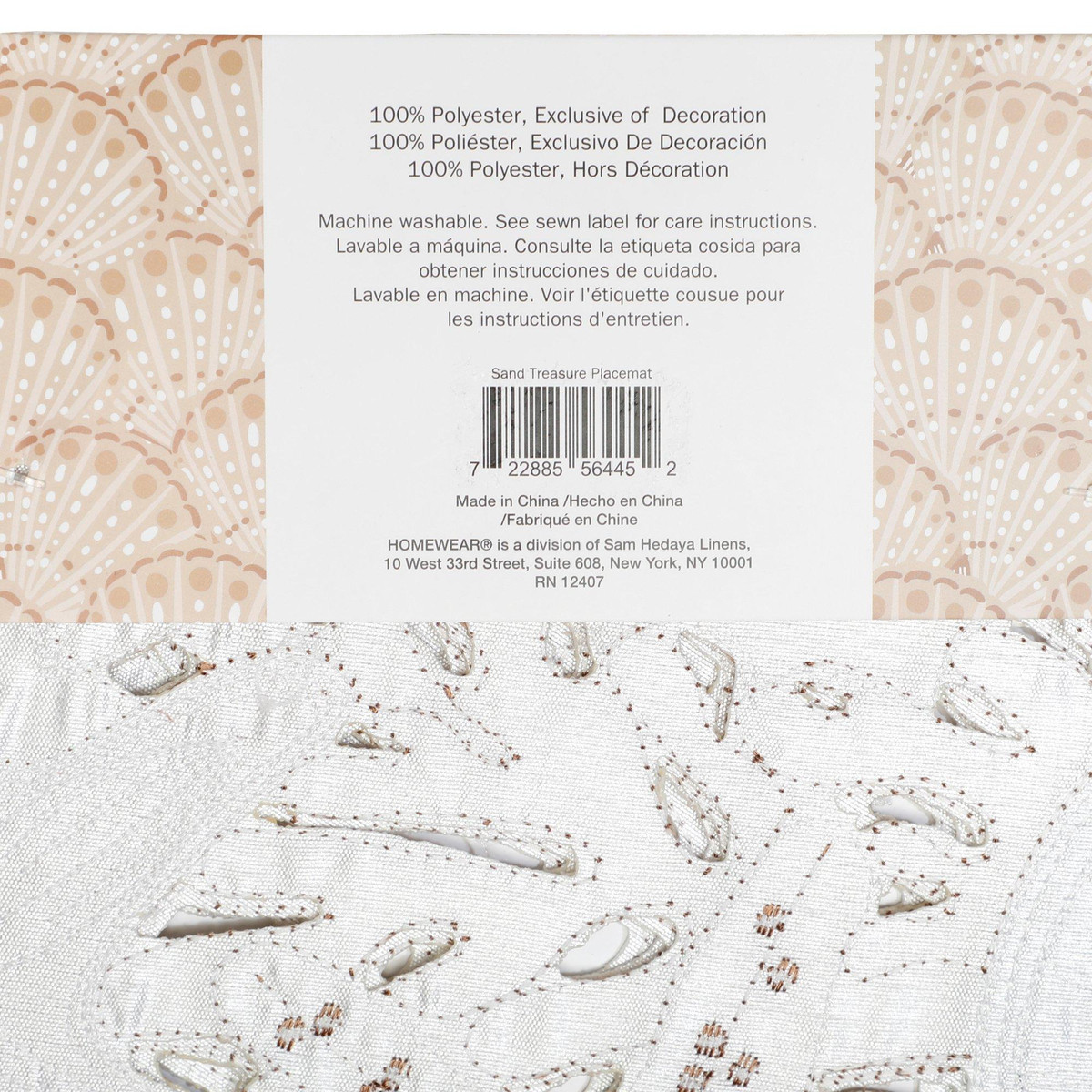 Add coastal decor style to your table with a 4-pack of round placemats featuring a sand treasures design. Crafted from 100% polyester, they blend seaside charm with everyday function. Perfect for casual dining or relaxed entertaining, these placemats are durable, easy to clean, and built to last. Fabrication is 100% polyester. Measures 15 in round.