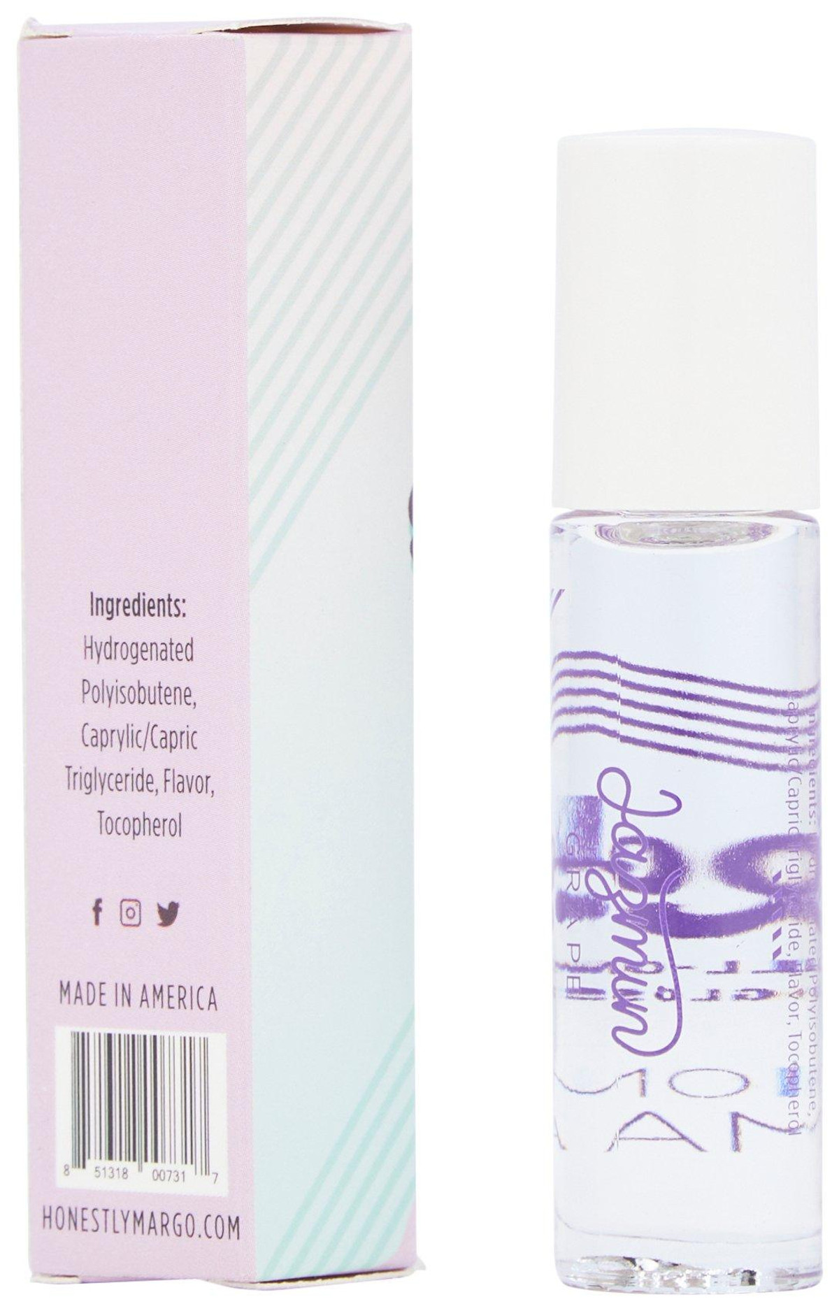 Never tacky or sticky, this crystal-clear lip gloss is refreshingly lightweight. Infused with Vitamin E, Honestly Margos Roller Girls Roll-On lip gloss is the epitome of simple, fresh and fun beauty. his botanical berry varietal is a classic flavor. With crystal clear shine and a lightweight feel, Grape Jazmin will make you the envy of any roller rink. For bold beauty on and off the rink!