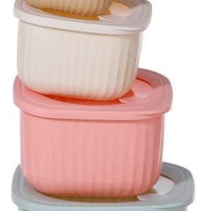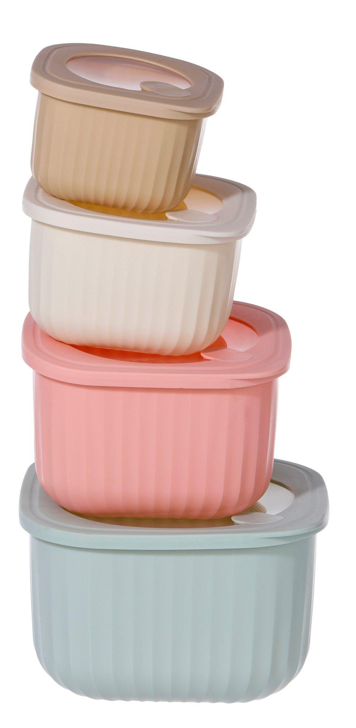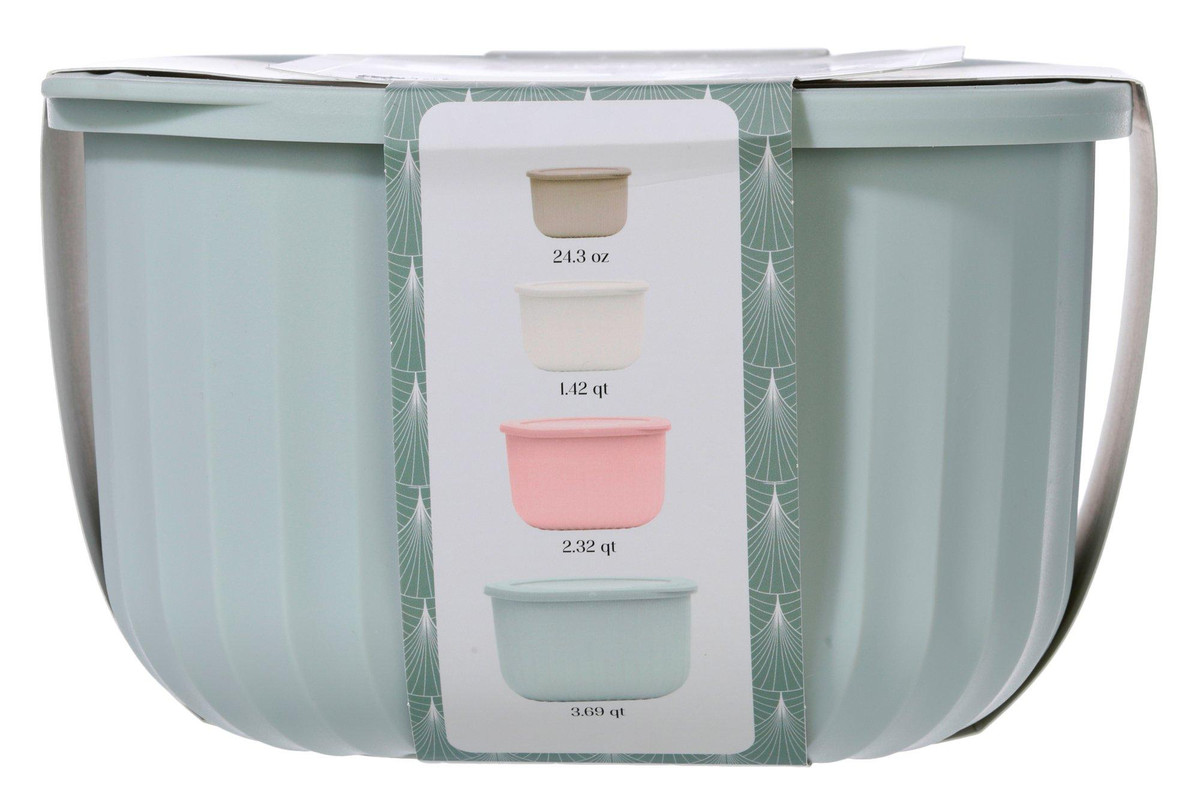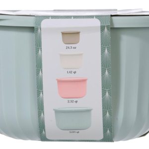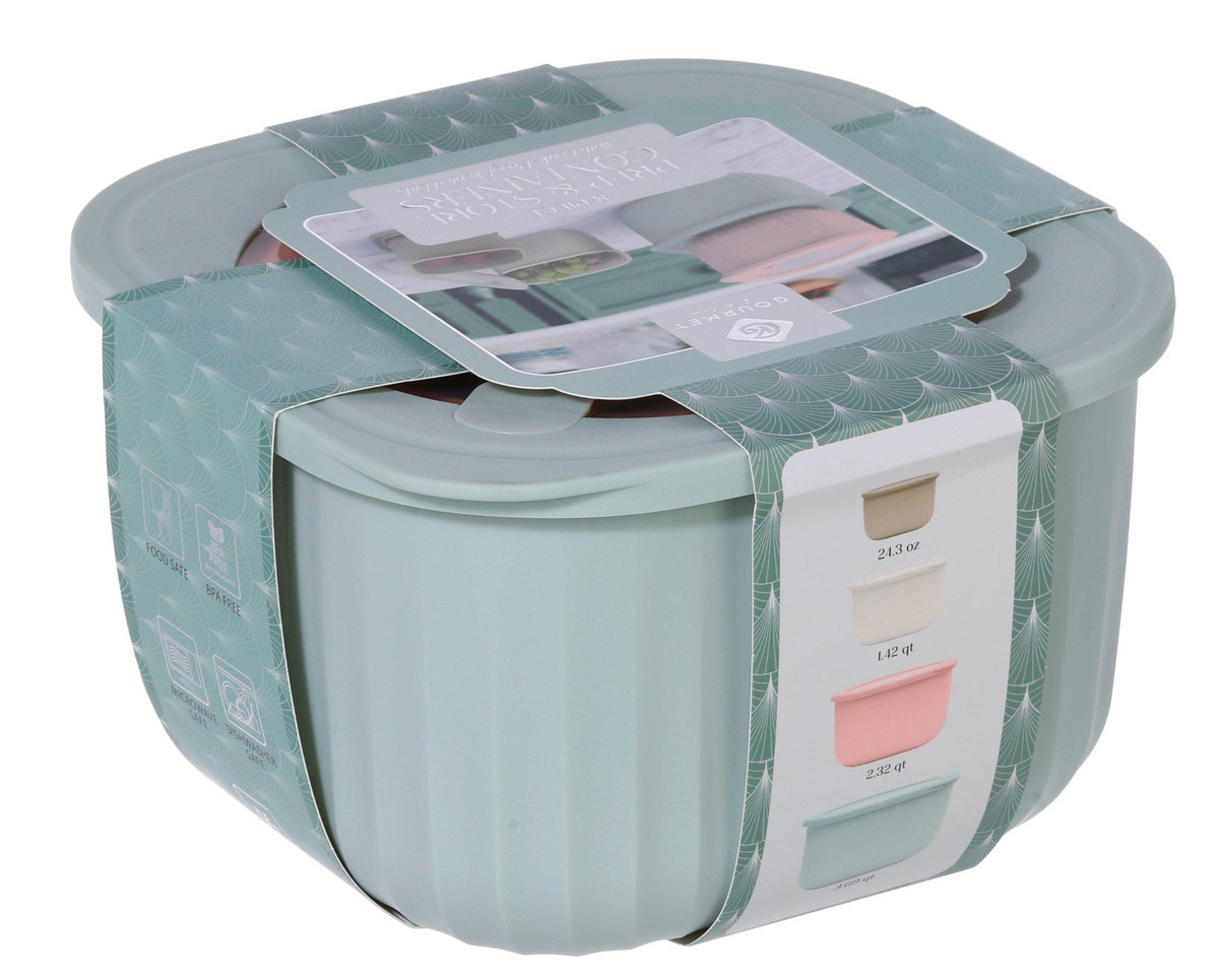 Gourmet Kitchen brings sophistication to your storage with this high-quality eight piece set of containers. They are microwave, freezer, and dishwasher safe, and are airtight/leak proof. Includes one 24.3 Oz, one 1.42 qt, one 2.32 qt, one 3.69 qt and four BPA-free lids.