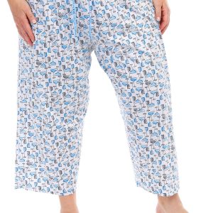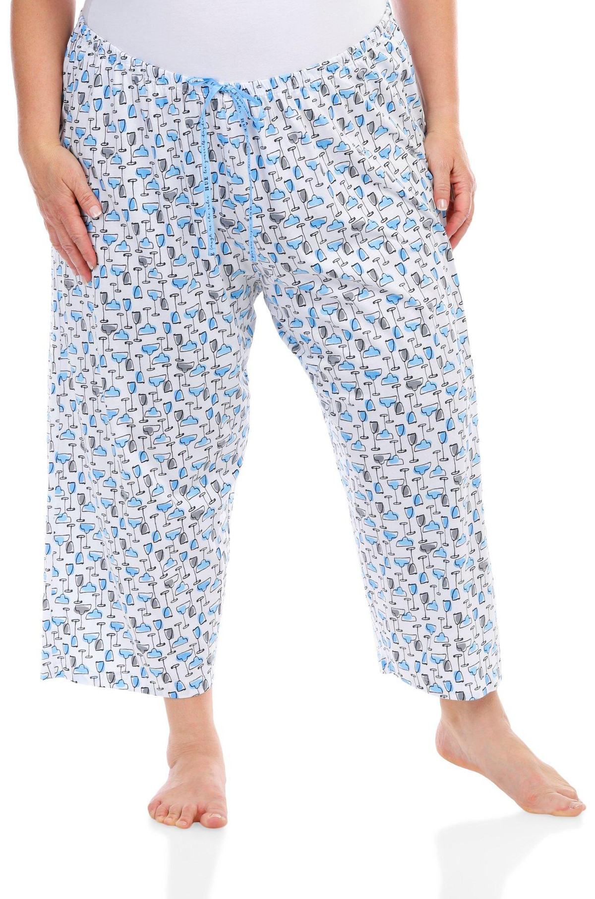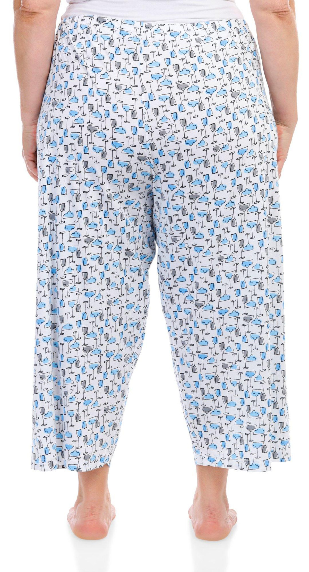 Stay cool and stylish with these Drawstring Sleep Capris. Featuring a playful margarita glass print pattern, these capris add a fun touch to your nighttime wardrobe. The drawstring waistband ensures a comfortable and adjustable fit, while the temperature-regulating fabric keeps you cool throughout the night. Perfect for warm nights or lounging at home, these sleep capris combine comfort and style effortlessly. Fabrication is 60% cotton and 40% rayon.