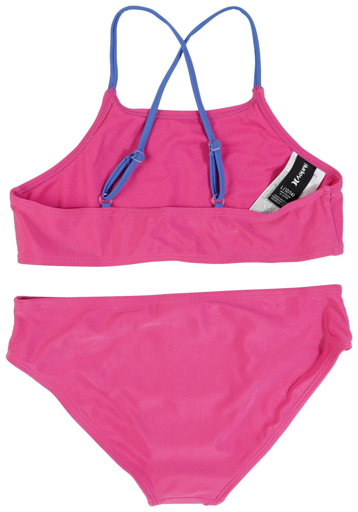 Dive into fun with our Girls solid pink raceback two piece swimsuit. Made from a blend of polyester and elastane, this swimsuit features solid pink color with logo print that’s perfect for sunny beach days or poolside play. Designed for comfort and style, it’s ideal for your girl’s swim adventures.