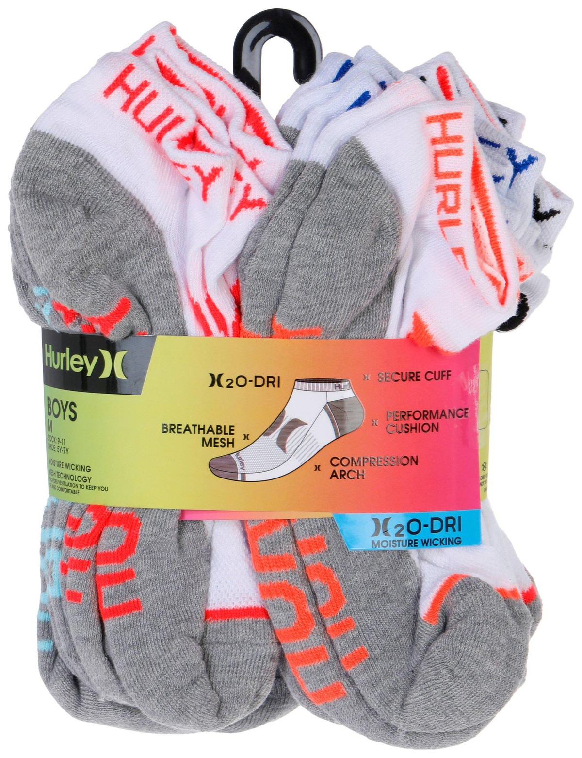 Support active days with this Boys 10 Pk Low Cut Socks. Designed with breathable mesh tops, moisture-wicking fabric, and performance cushioning, each pair offers a secure cuff and compression arch for all-day comfort. Featuring assorted colorblock styles for versatile wear. Ideal for school, sports, or daily activities. Machine washable for easy care. For Boys sock sizes 9-11, shoe sizes 5Y-7Y.