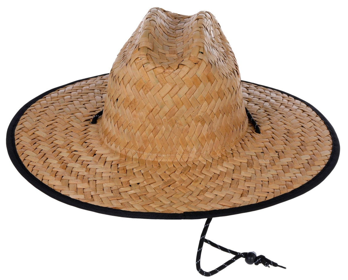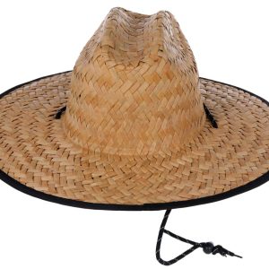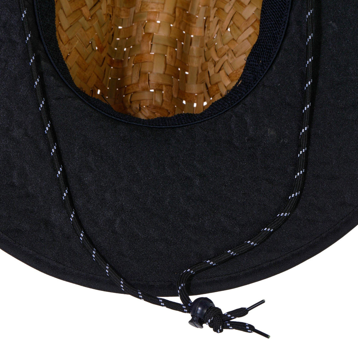 Stay shaded in sleek style with this Men’s Shoreline Straw Lifeguard Hat. Made from natural straw, it features a solid black fabric underside, an adjustable neck strap for a secure fit, and a front patch with branding details. Ideal for beach outings, poolside lounging, or outdoor work. Spot clean for best care.