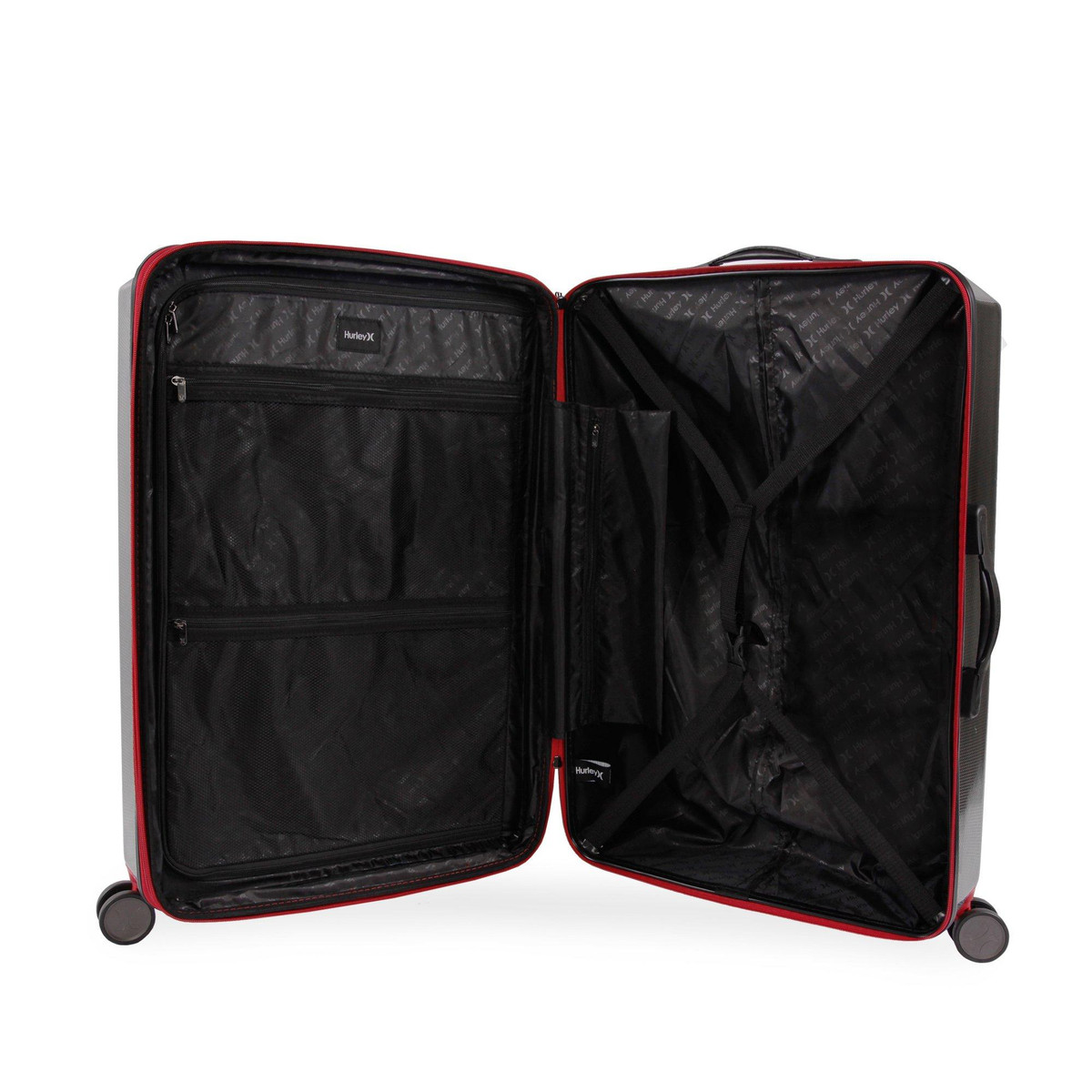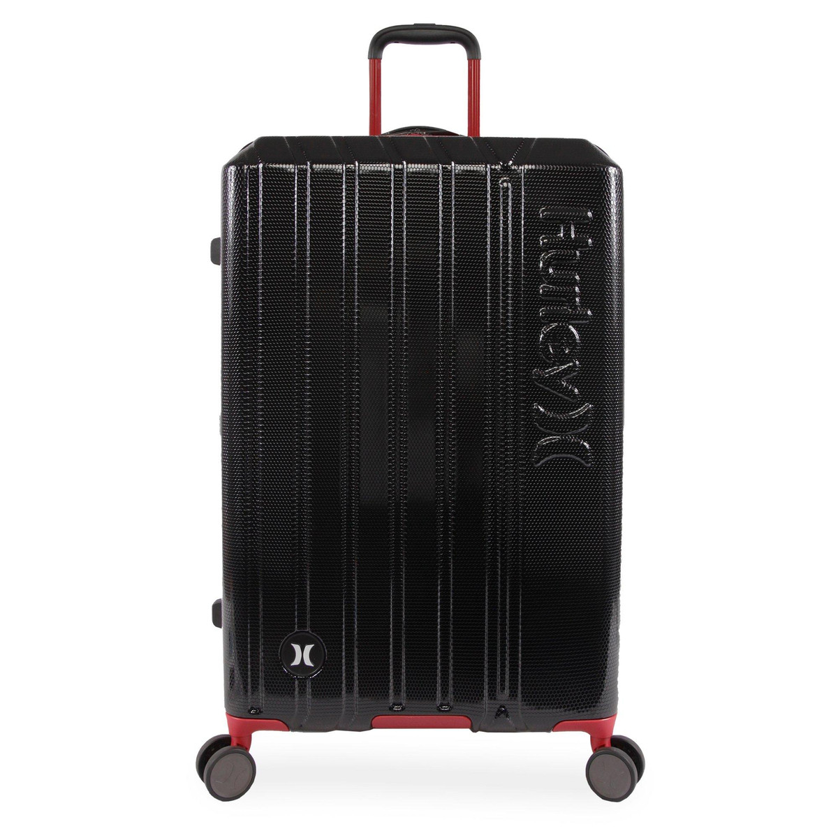 Zip through the terminal and to your destination with this hard side, spinner luggage from Hurley. Made of durable super abs hardshell technology, you’ll be at ease knowing your clothing and accessories will be safe. This luggage features push button trolley handle, is expandable which offers 25% additional capacity, top, side and bottom carrying handles for easy lifting, multiple interior compartments and interior mesh pockets and tie down straps. Suitcase measures 29 in. x 19 in. x 12.5 in.