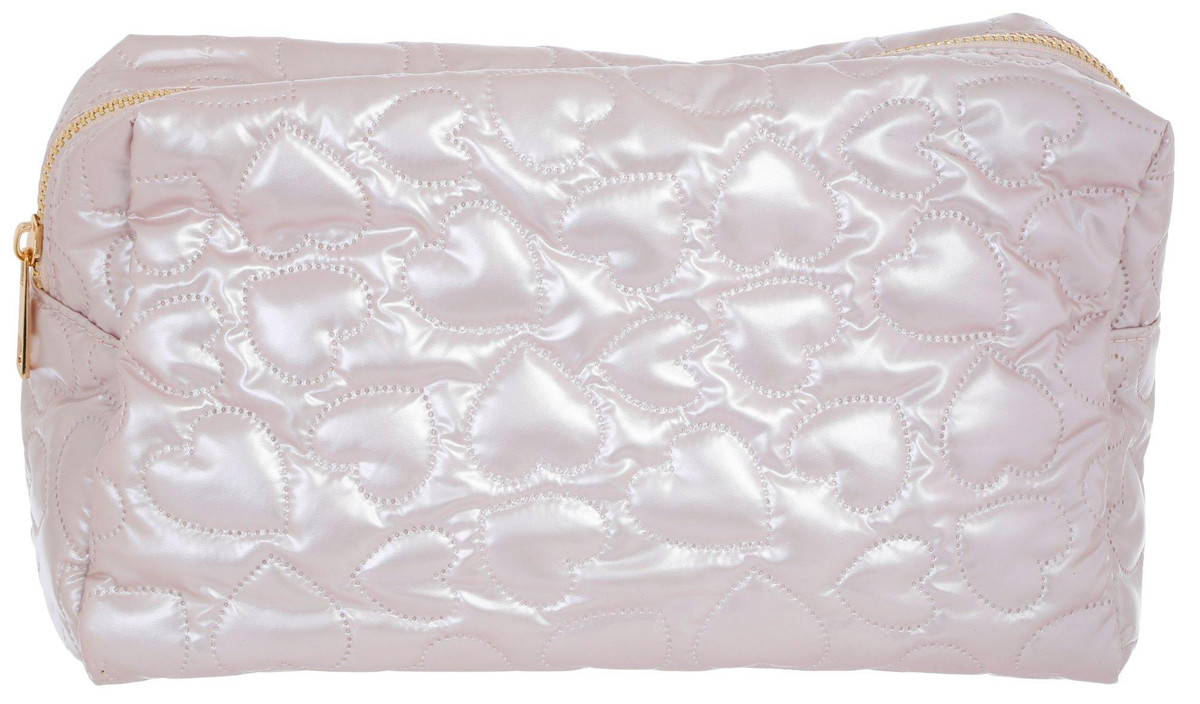 Introducing the Quilted Heart Loaf Cosmetic Bag, a charming and practical accessory for your beauty essentials. This bag features a delightful quilted heart design, adding a touch of elegance to your routine. Measuring 10 inches by 4 inches by 7 inches, it offers ample space for your makeup, brushes, and other items. The compact size makes it perfect for travel or everyday use, keeping your cosmetics organized and easily accessible. Elevate your beauty routine with this stylish cosmetic bag.